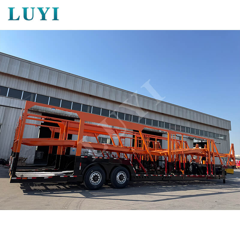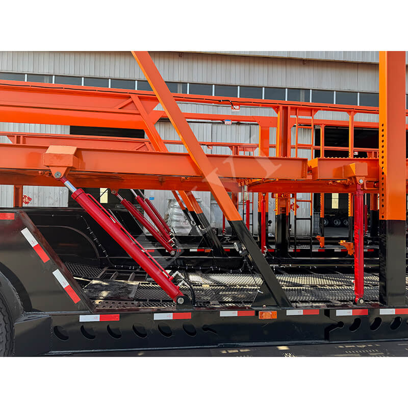 Semirremolque para transporte de vehículos de 2 ejes y 8 plazas de aparcamiento. La carrocería está hecha de acero de alta resistencia, con una estructura de carga estable y está equipada con un sistema de elevación hidráulico, que puede ajustar de manera flexible la altura de los espacios de estacionamiento, adecuado para cargar varios modelos. Puede transportar de manera eficiente 8 vehículos a la vez, lo que ayuda a la industria de la logística automotriz a mejorar la eficiencia del transporte.