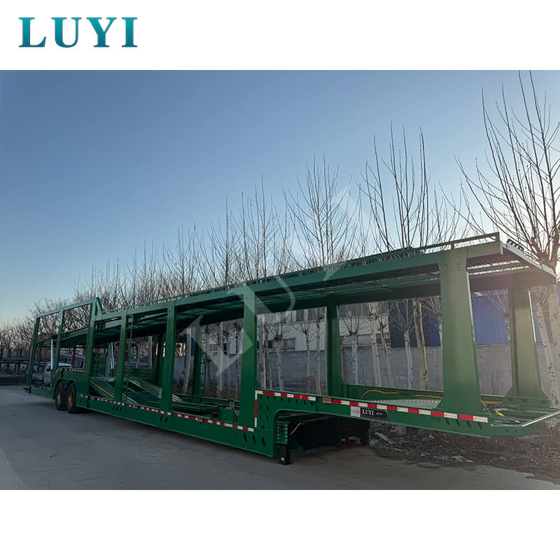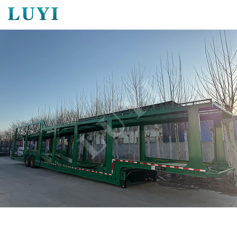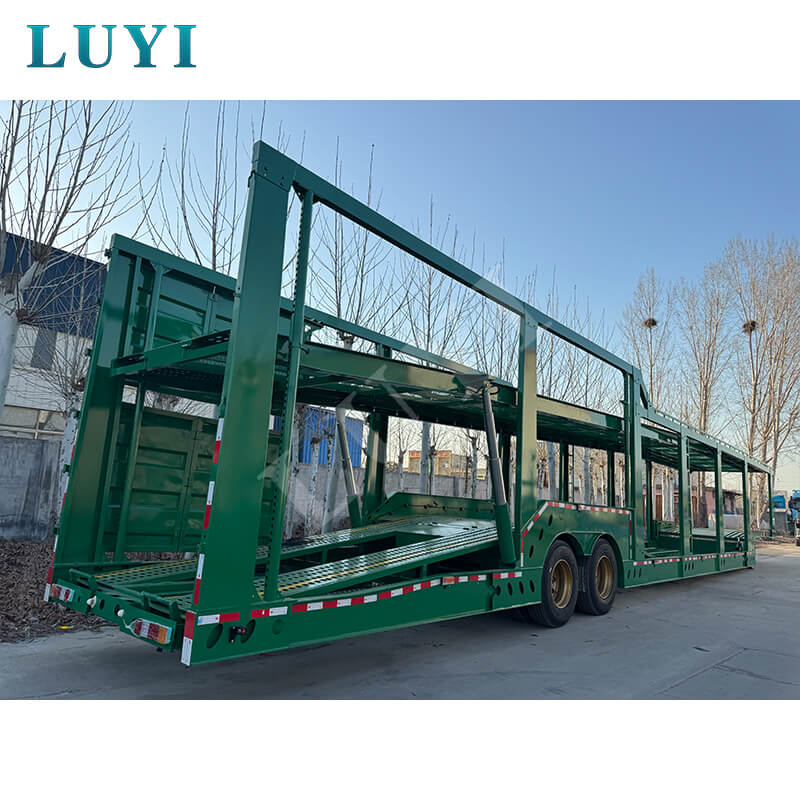 El remolque para transporte de vehículos de 2 ejes es un semirremolque para transporte de automóviles profesional. Sus dimensiones estándar son 12600×2500×1600 mm y admite personalización bajo demanda, lo que puede satisfacer de manera flexible las necesidades de transporte de diferentes modelos de vehículos, lo que lo hace muy práctico.