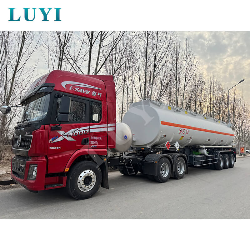 El semirremolque cisterna de petróleo de acero de 3 ejes y 30.000 litros LUYI, originario de la provincia de Shandong, China, es una excelente opción en el campo del transporte de combustible. Puede transportar de manera eficiente medios como diésel, gasolina, petróleo y petróleo crudo, con una carga efectiva máxima de 60 toneladas para satisfacer las necesidades de transporte de gran volumen.