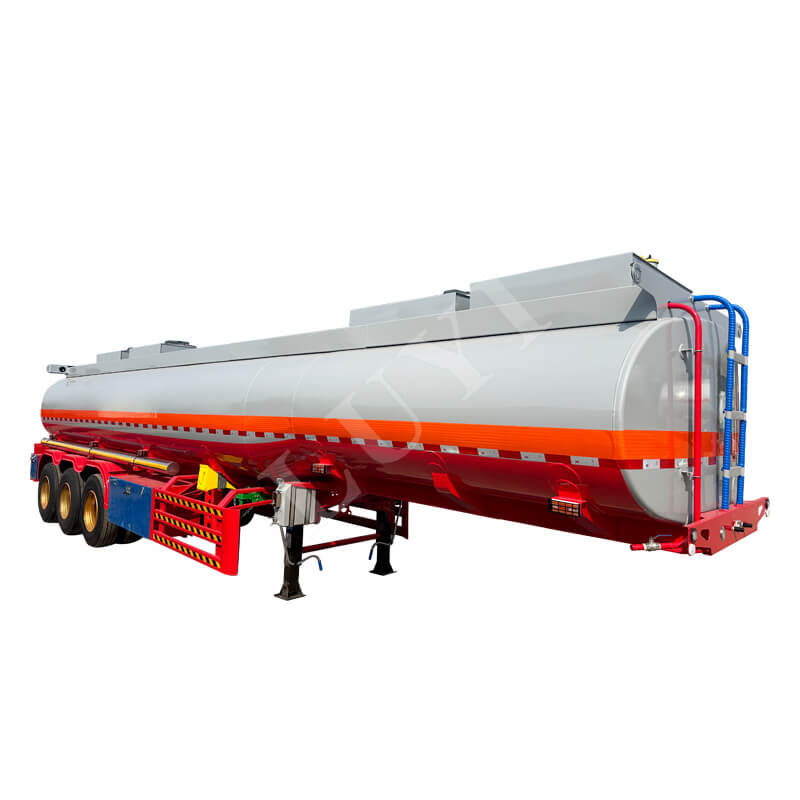 Este vehículo tiene una gran flexibilidad, con configuraciones opcionales de 2/3/4 ejes. Está equipado con ejes marca FUWA de 13 toneladas, suspensiones mecánicas confiables y neumáticos con especificación 12R22.5, lo que garantiza una conducción estable y adaptabilidad a diversas condiciones de la carretera. La carga máxima efectiva supera los 30.000 kilogramos y el volumen oscila entre 30 y 45 metros cúbicos, satisfaciendo diferentes necesidades de transporte. El pivote central ofrece opciones JOST de 2 pulgadas (50 mm) o 3,5 pulgadas (90 mm) y el color se puede personalizar según los requisitos del cliente. Con alta adaptabilidad y practicidad, se ha convertido en el equipo preferido en el campo de la logística de combustibles.
