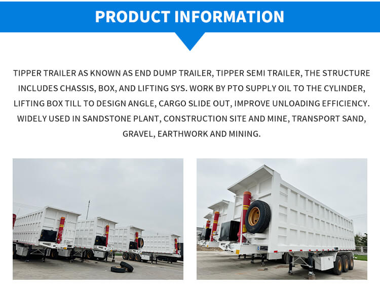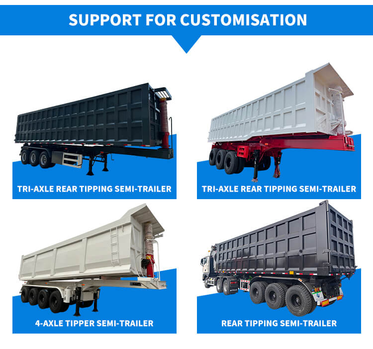 Semirremolque de descarga trasera hidráulica de 3 ejes y 40 a 60 toneladas
