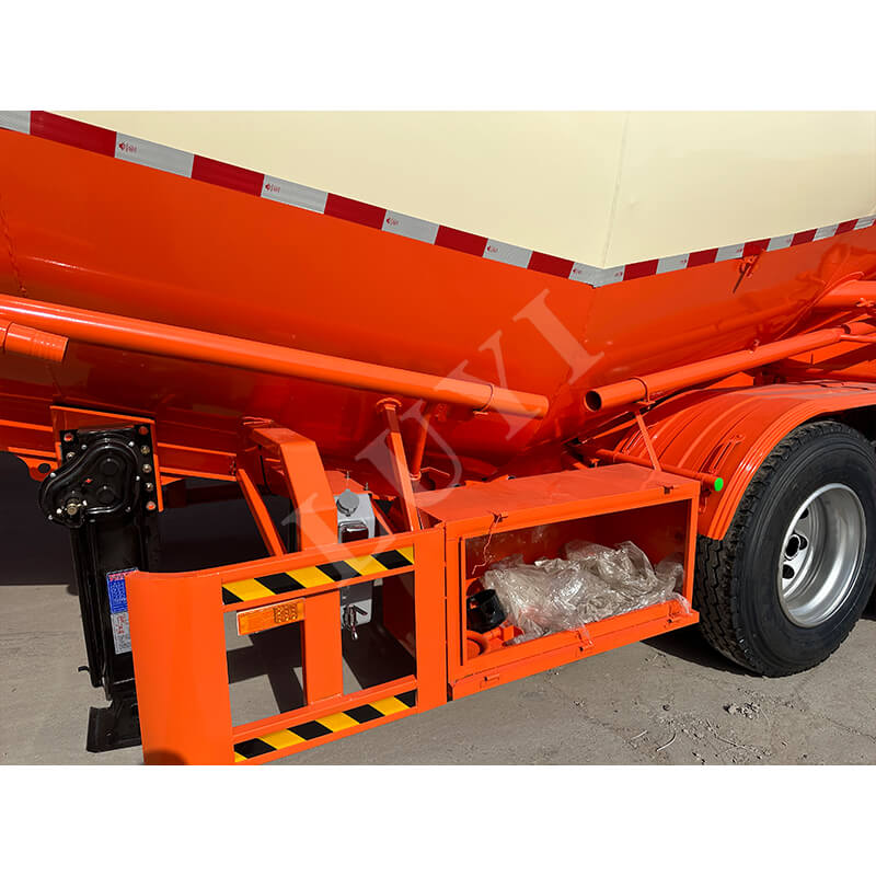 Las dimensiones del remolque son 10500×2550×4000 mm. Está equipado con dos opciones de suspensión mecánica/neumática, combinadas con una estructura estable de 3 ejes y estabilizadores de alta resistencia de 28 toneladas para garantizar la estabilidad durante el estacionamiento y la conducción. El sistema de frenos de doble línea mejora la seguridad. Las opciones de neumáticos incluyen varias especificaciones, como 11.00r20 y 12r22.5, y el kingpin está disponible en dos modelos: JOST 50 mm / 90 mm. Además, el color se puede personalizar según las necesidades, adaptándose totalmente a diferentes escenarios de transporte y requisitos estéticos, convirtiéndolo en un equipo confiable para el transporte de cemento a granel.