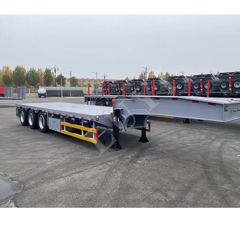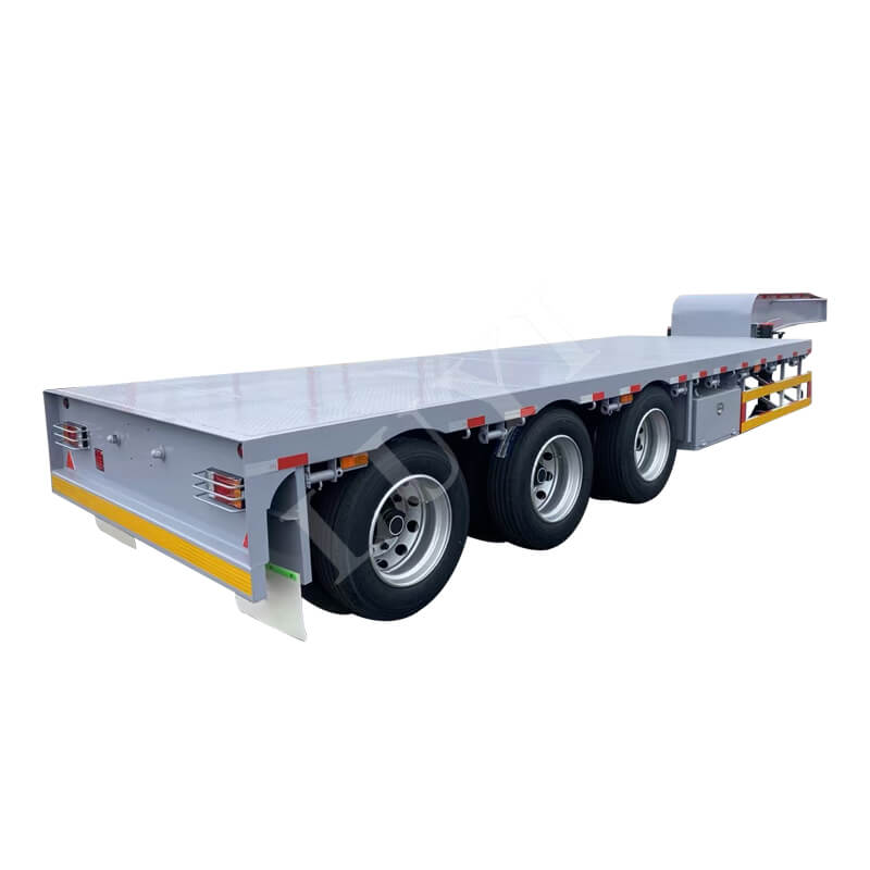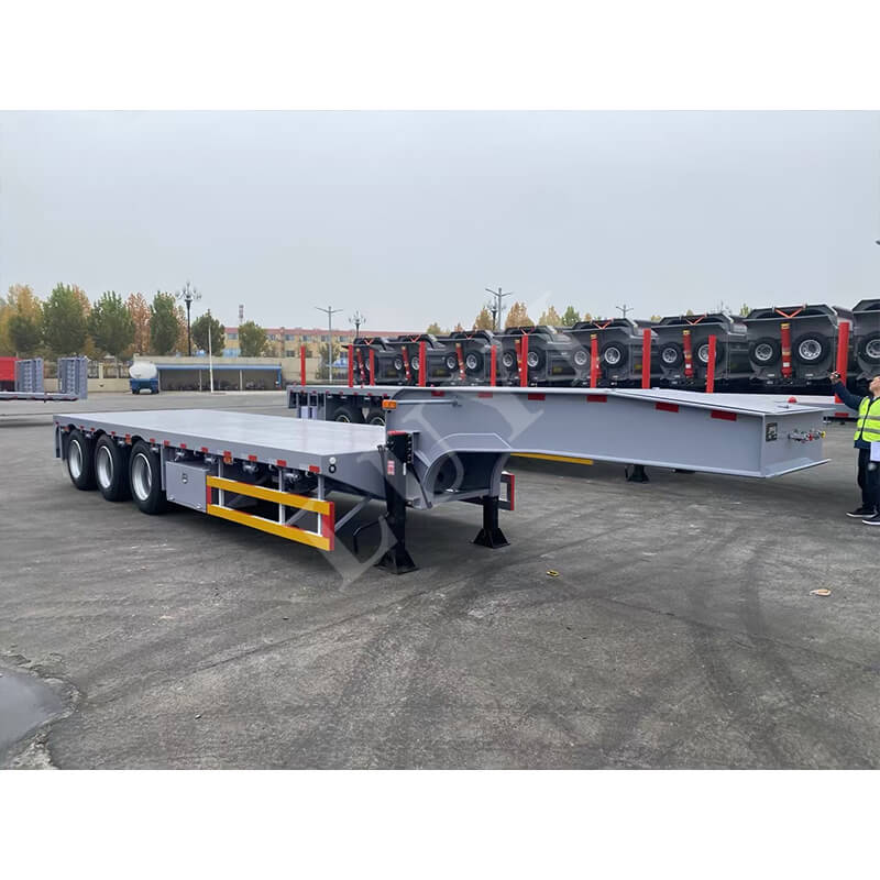 El remolque ofrece unas dimensiones de 11500/12500/13000×3000×1750 mm, que también son personalizables. Está equipado con ballestas de 90 mm (ancho) × 13/16 mm (grosor) × 10 capas, y los ejes se pueden seleccionar de la marca FUWA de 13/16 toneladas, lo que garantiza un funcionamiento estable y confiable. El sistema de frenos utiliza válvulas de relé para una respuesta sensible; el pivote central tiene la especificación JOST de 2 pulgadas (50 mm) o 3,5 pulgadas (90 mm) y el tren de aterrizaje adopta el tipo JOST de dos velocidades de 28 toneladas para facilitar la operación. Los colores se pueden personalizar para adaptarse a diversos escenarios de transporte.
