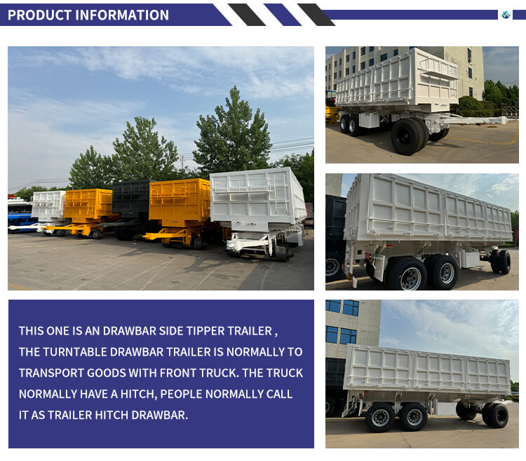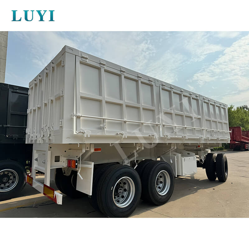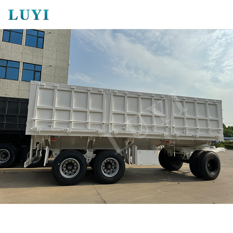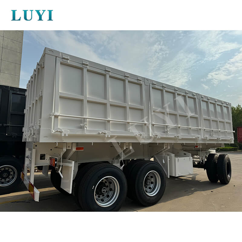 El remolque volquete de volteo lateral para tractor de transporte de carga de 3 ejes y 40 toneladas LUYI, originario de Shandong, China, es un remolque de camión tipo remolque completo especialmente diseñado para el transporte de arena y grava. La carrocería del remolque está hecha de acero de alta resistencia, combinada con configuraciones opcionales de 2 a 4 ejes y suspensión mecánica/neumática. Está adaptado a neumáticos 12R22.5, lo que garantiza una capacidad de carga estable y una gran transitabilidad, con una carga útil máxima efectiva de más de 30.000 kg, lo que satisface fácilmente los requisitos de carga pesada.