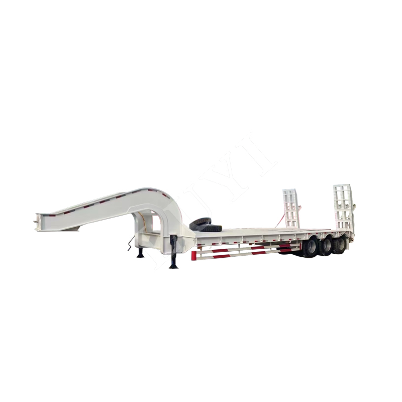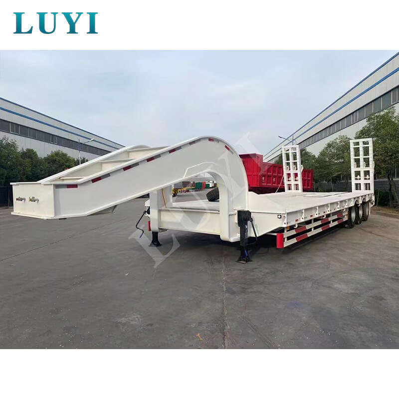 El remolque de plataforma baja LUYI de 3 ejes y 40 toneladas, un vehículo de transporte pesado de alto rendimiento de Shandong, China, se destaca por su capacidad de carga máxima de 120 toneladas, y puede manejar fácilmente las necesidades de transporte de equipos pesados.