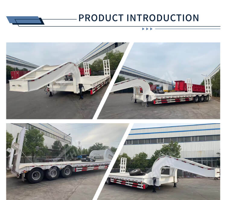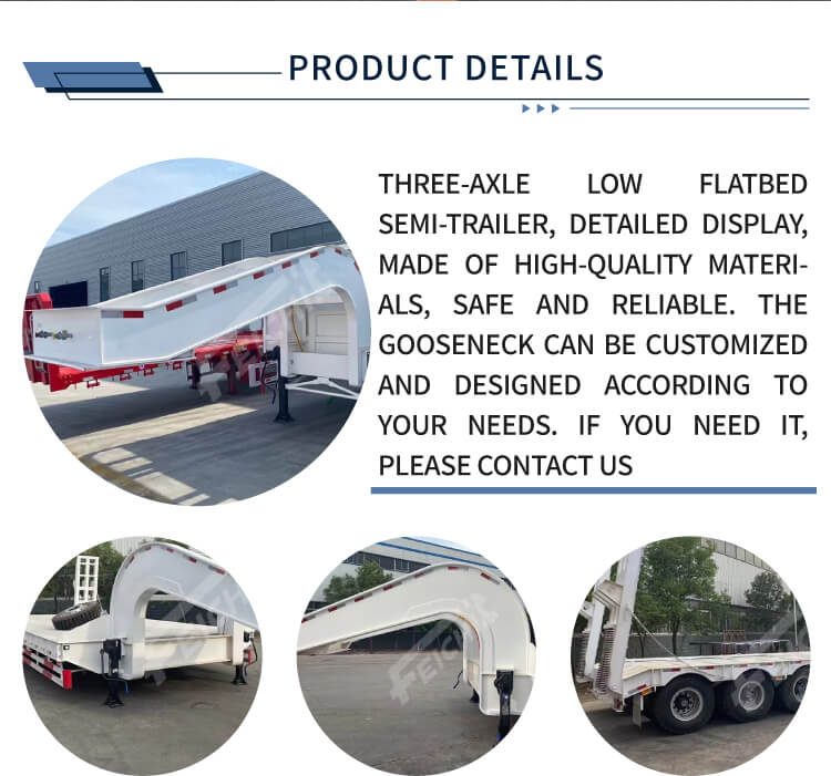Fabricado en acero de alta calidad, tiene un tamaño de 17000×3000×1500 mm, lo que garantiza un amplio espacio para la carga. Cuenta con 4 ejes para una fuerte capacidad de carga, con suspensión neumática o de ballesta opcional para garantizar una conducción estable y una protección eficaz de la carga. El diseño de cuello de cisne desmontable mejora la flexibilidad de carga, mientras que las opciones de escalera hidráulica o manual simplifican la carga y descarga de equipos pesados.
