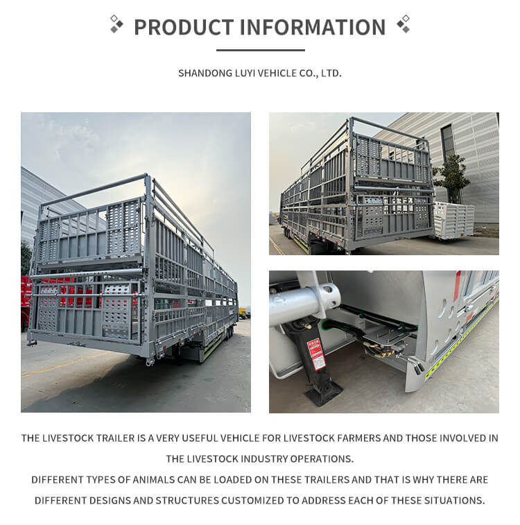 El semirremolque de estaca de doble capa de 3 ejes y 60 toneladas LUYI, originario de la provincia de Shandong, China, es un semirremolque de camión de alta eficiencia dedicado al transporte de ganado y carga a granel. Posee múltiples certificaciones, incluidas ISO, CCC, BV, CE y DOT, lo que garantiza una calidad confiable y conforme.
