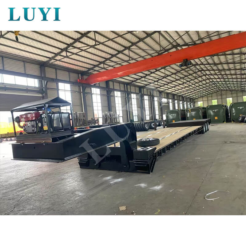 Originario de Shandong, China, el semirremolque Lowboy de 3 ejes y 60 toneladas LUYI es un semirremolque profesional especialmente diseñado para transportar equipos pesados. Construido con acero de alta calidad y adoptando tecnología de pintura de poliuretano, cuenta con resistencia a la corrosión y durabilidad. Con unas dimensiones de 2200030001600 mm, es adecuado para diversos escenarios de transporte de equipos pesados.