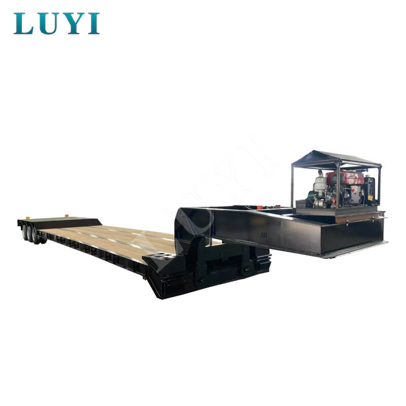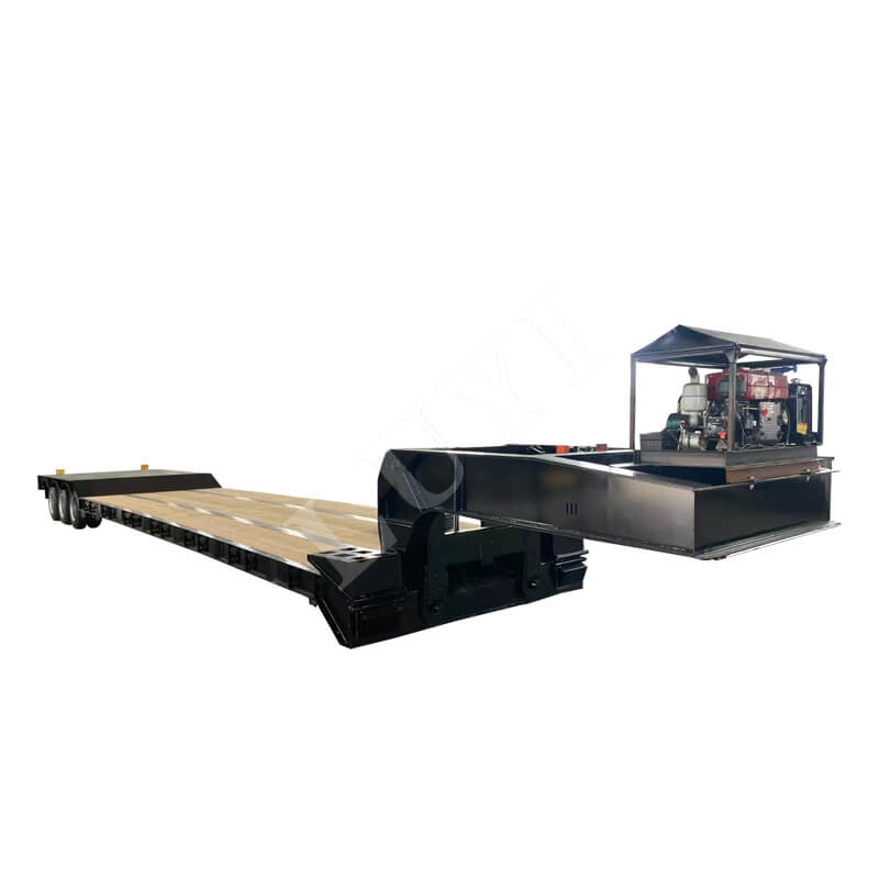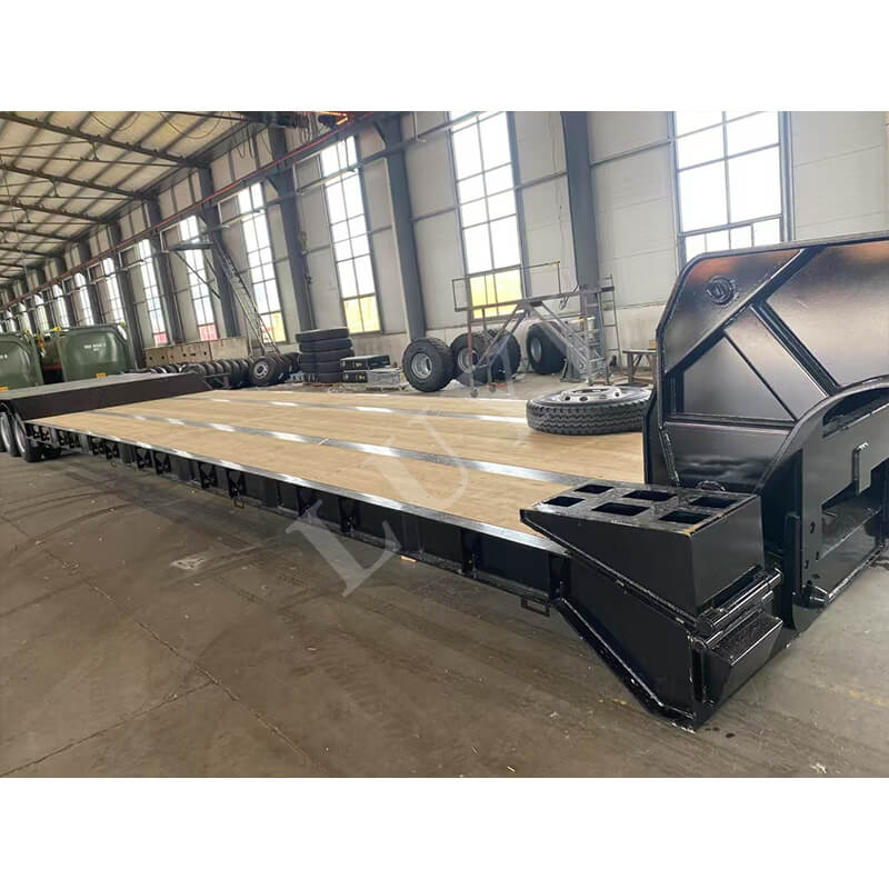 Equipado con una configuración de 3 ejes, utiliza ejes de marcas reconocidas como BPW y Fuwa. La suspensión se puede seleccionar de manera flexible entre suspensión mecánica o suspensión neumática, combinada con neumáticos 12R22.5, lo que brinda una excelente estabilidad de conducción y rendimiento de carga, con una carga útil máxima efectiva de 60 toneladas. Está configurado con patas de aterrizaje estándar de 28 toneladas y el pivote central ofrece modelos JOST de 2 pulgadas (50 mm) o 3,5 pulgadas (90 mm), lo que garantiza una conexión estable y una alta adaptabilidad. Con colores personalizables y una garantía de seis años, es una opción confiable para el transporte de equipos pesados.