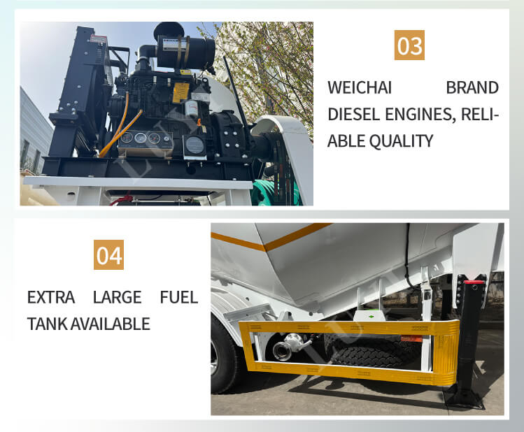 El cuerpo del camión cisterna está hecho de acero de alta calidad, con canales de acero 16# utilizados para las vigas laterales, lo que garantiza una estructura resistente y duradera. Su carga útil máxima efectiva supera los 30.000 kg y la capacidad de carga varía de 30 a 60 toneladas, lo que puede adaptarse de manera flexible a las necesidades de diferentes volúmenes de transporte. Equipado con una estructura de 3 ejes, combinados con neumáticos 12R22.5 y llantas 9.00-22.5, y sostenido por una suspensión neumática mecánica, funciona de manera estable y puede hacer frente a diversas condiciones de la carretera. Los estabilizadores estándar de 28 toneladas garantizan un soporte firme durante el estacionamiento. Además, viene con un período de garantía de 6 años, lo que reduce completamente las preocupaciones de uso y brinda soporte de equipo confiable y a largo plazo para el transporte de cemento en polvo a granel.