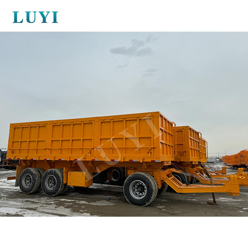 Originario de la provincia de Shandong, China, el semirremolque basculante lateral de doble varilla y 3 ejes LUYI es un semirremolque de carga de alta calidad adecuado para el transporte de carga en múltiples escenarios. La carrocería del remolque está fabricada en acero de alta calidad y tiene unas dimensiones de 7500×2500 mm. Presenta una estructura robusta y una capacidad de carga estable, con una carga útil máxima efectiva de 25 toneladas, lo que permite un transporte eficiente de contenedores y mercancías a granel.