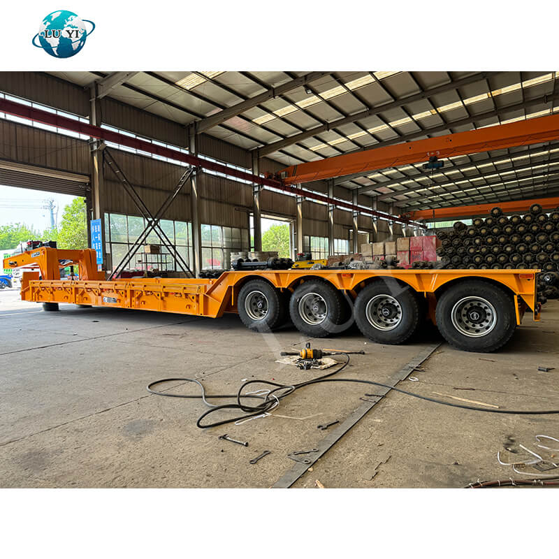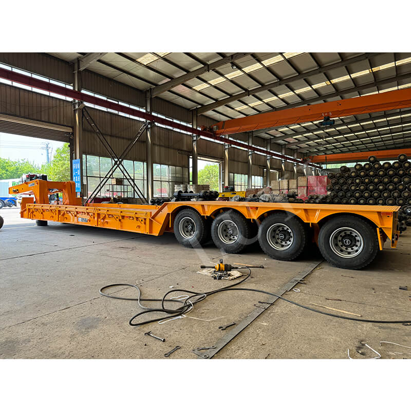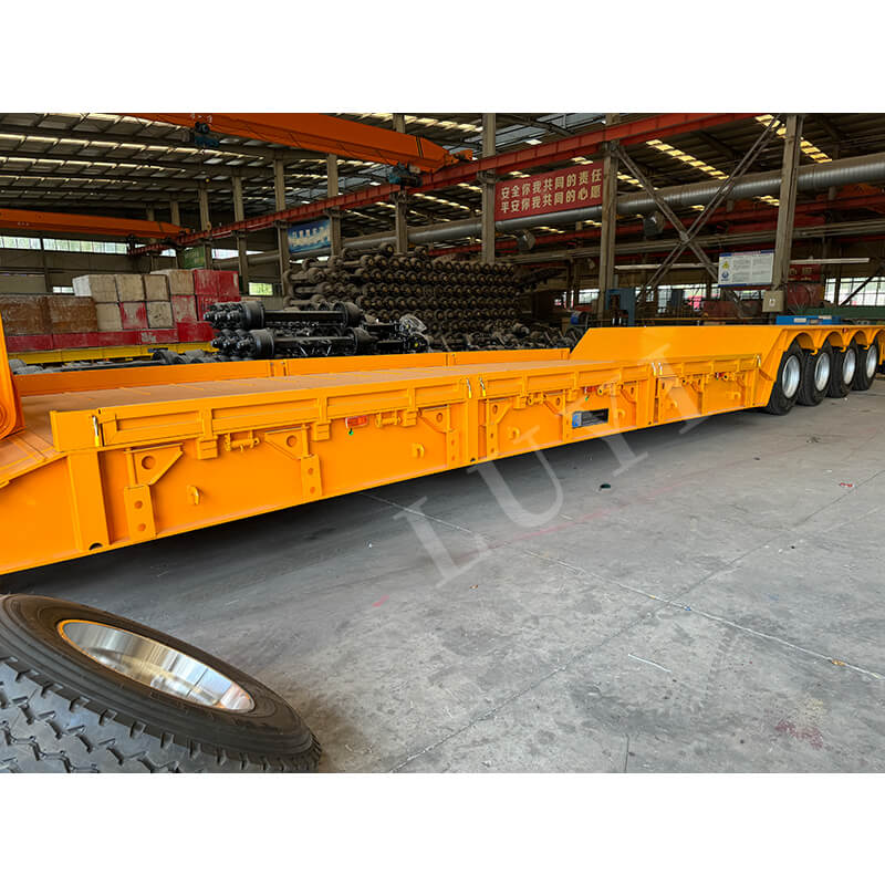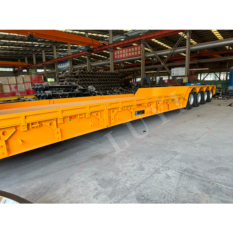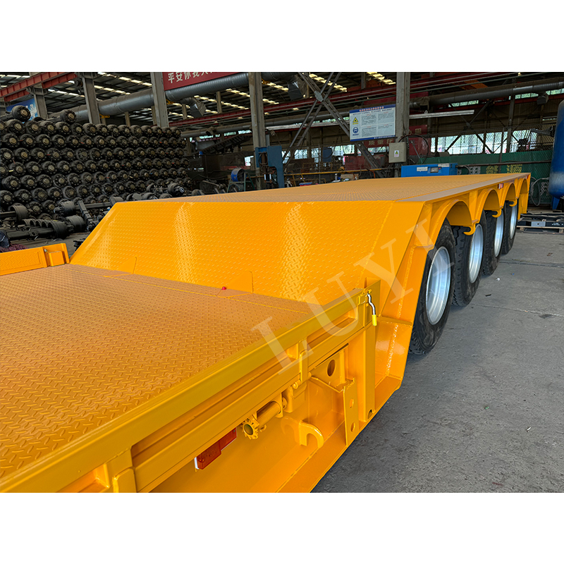 El remolque ofrece suspensión neumática o mecánica opcional, combinada con ballestas de 90 (ancho) ×13 (grosor) ×10 (capas) y neumáticos opcionales 12R22.5/12.00R20/11R22.5, lo que garantiza estabilidad y confiabilidad.transporte capaz. También está equipado con patas de soporte estándar JOST de 28 toneladas para una gran estabilidad. La marca Luyi construye productos de calidad con materiales sólidos y una artesanía exquisita, proporcionando una solución segura y eficiente para el transporte de equipos pesados a larga distancia.