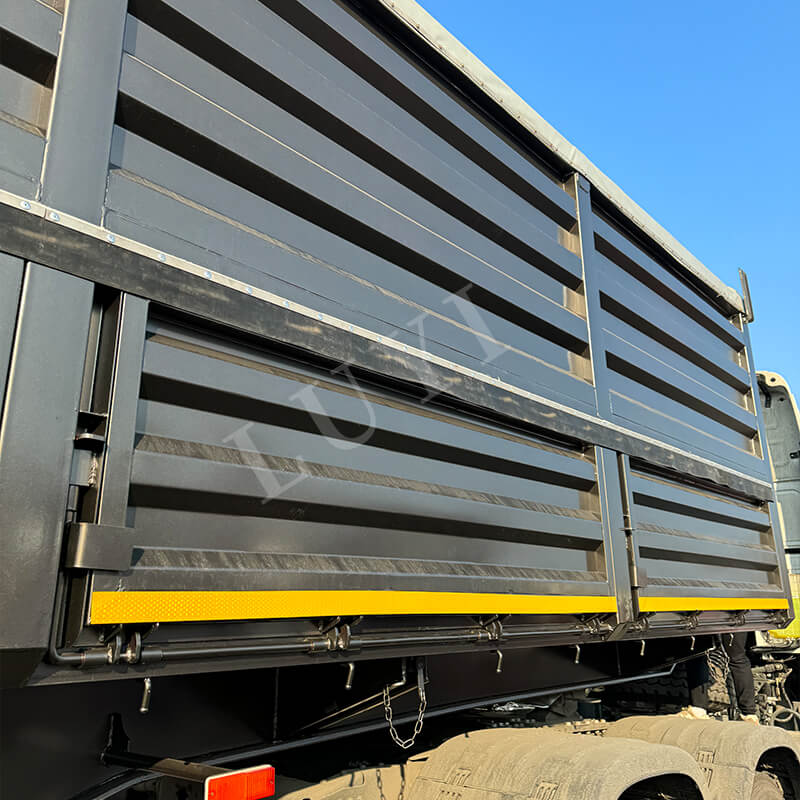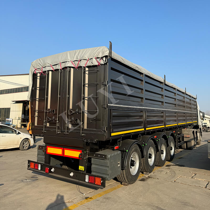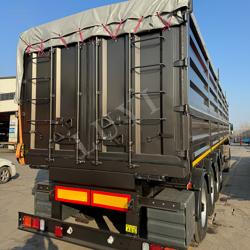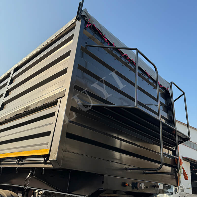 Originario de la provincia de Shandong, China, el semirremolque volcador LUYI de 4 ejes, 40 pies y 80 toneladas es un semirremolque volquete de alto rendimiento especialmente diseñado para el transporte de arena, grava y carbón. La carrocería del remolque está fabricada en acero al carbono de alta calidad, con unas dimensiones de 9500×2500×3600 mm. Tiene una estructura robusta resistente a cargas pesadas, con una carga útil máxima efectiva de hasta 80 toneladas, lo que permite una carga eficiente de diversos productos a granel.