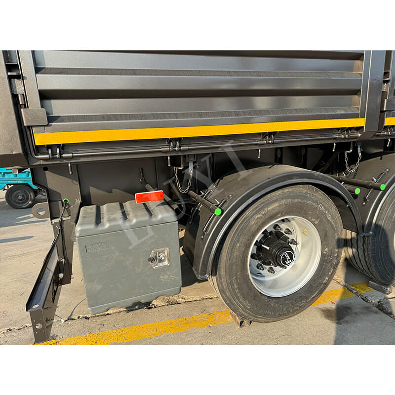 Fabricado con acero al carbono de alta calidad, el remolque cuenta con una estructura duradera con dimensiones de 9500x2500x3600MM. Cuenta con una configuración de 4 ejes, combinado con una suspensión mecánica y ballestas de 90(W)mm×13(Espesor)mm×10(Capa), lo que garantiza una carga estable incluso en condiciones difíciles. La carga útil máxima alcanza las 80 toneladas, mientras que las opciones de neumáticos (12R22.5/12.00R20/11R22.5) y el tren de aterrizaje estándar JOST de 28 toneladas mejoran la adaptabilidad y la seguridad. El color se puede personalizar según las preferencias del cliente, lo que lo convierte en una opción confiable y versátil para el transporte de materiales a granel.