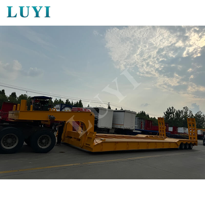 Etiquetas calientes: Semirremolque de plataforma baja con cuello de cisne desmontable, 4 ejes, 60/80 toneladas