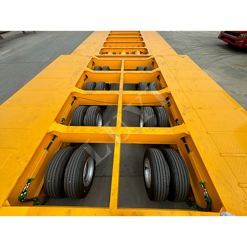 Las dimensiones del remolque son 12,5 × 2,55 × 3,7 metros. Además de la configuración de 4 ejes, también están disponibles opciones de 2 y 3 ejes. El sistema de suspensión ofrece dos soluciones: suspensión mecánica y suspensión neumática. Está equipado con neumáticos 12R22.5 y pasadores de tracción JOST para garantizar la estabilidad y seguridad del transporte.