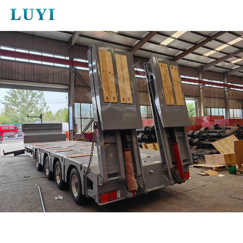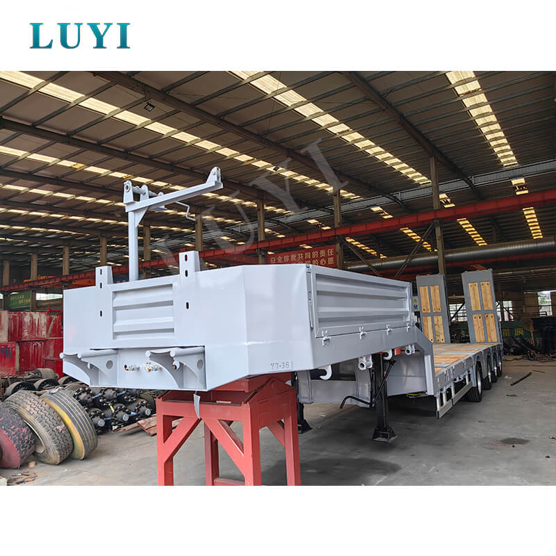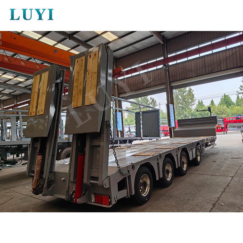 El semirremolque hidráulico de plataforma baja Luyi, de 4 ejes y 80 toneladas, originario de la provincia de Shandong, China, es un semirremolque de alta calidad diseñado específicamente para el transporte de carga pesada.
