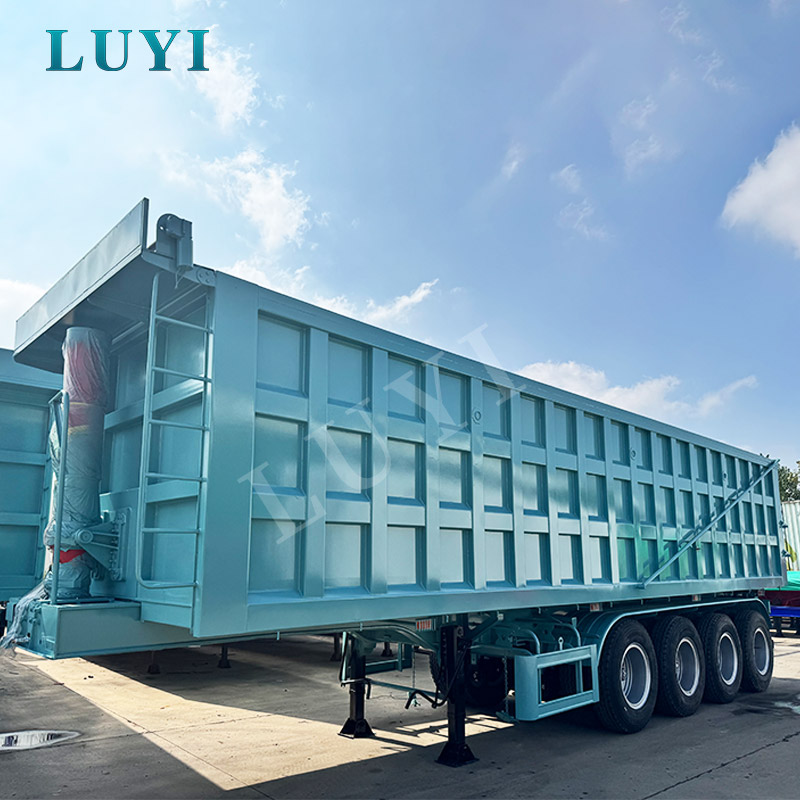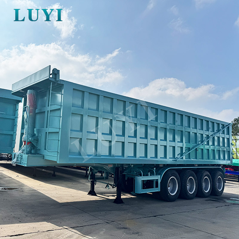 El semirremolque volquete trasero LUYI de 4 ejes y 80 toneladas, originario de Shandong, China, es un semirremolque de alta calidad diseñado específicamente para transportar materiales a granel como arena, piedra y carbón. Construido con acero al carbono de primera calidad, presenta dimensiones precisas de 10000x2500x3600MM, presentando robustez y estabilidad de carga, con una carga útil máxima de 80 toneladas para satisfacer las necesidades de transporte pesado.