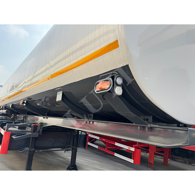 El sistema de suspensión ofrece opciones duales de suspensión mecánica y suspensión neumática, combinadas con neumáticos 12R22.5 para una gran estabilidad de conducción. Está equipado con patas de soporte estándar de 28 toneladas y pernos rey de 2 pulgadas (50 mm) o 3,5 pulgadas (90 mm), compatibles con varios tractores para una fácil operación. Los colores se pueden personalizar según los requisitos del cliente, equilibrando la practicidad y la personalización, lo que lo convierte en una opción confiable en el campo del transporte de combustible a larga distancia.