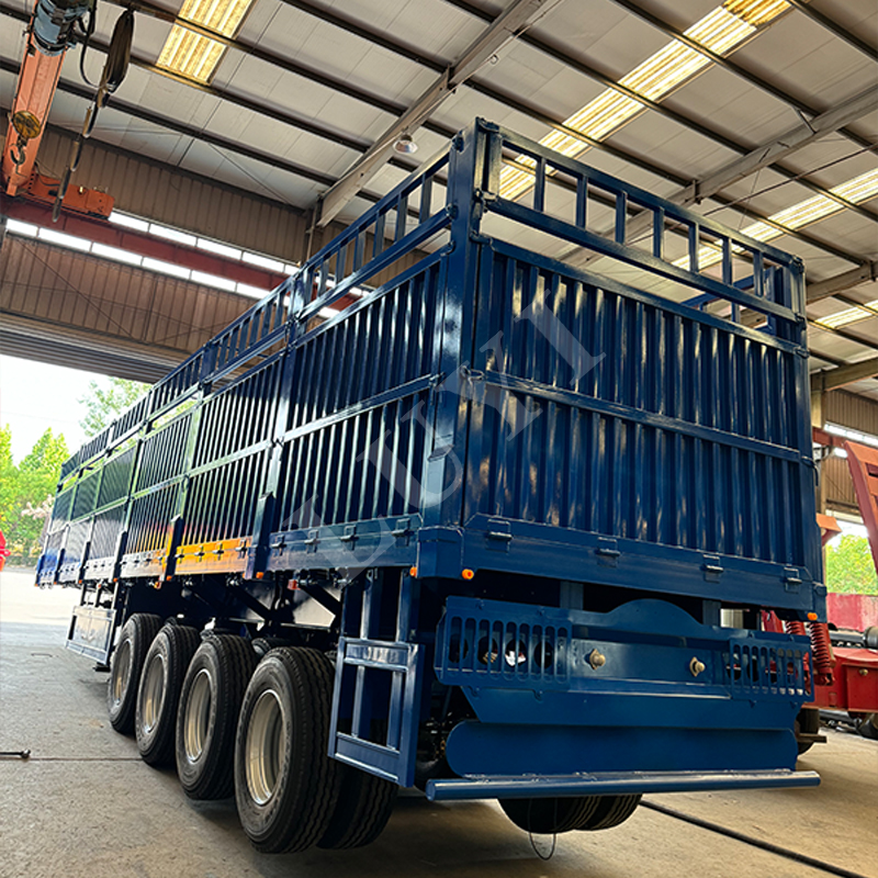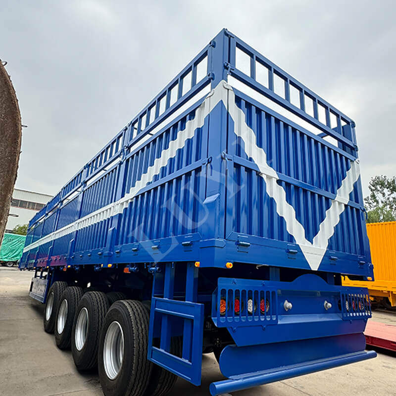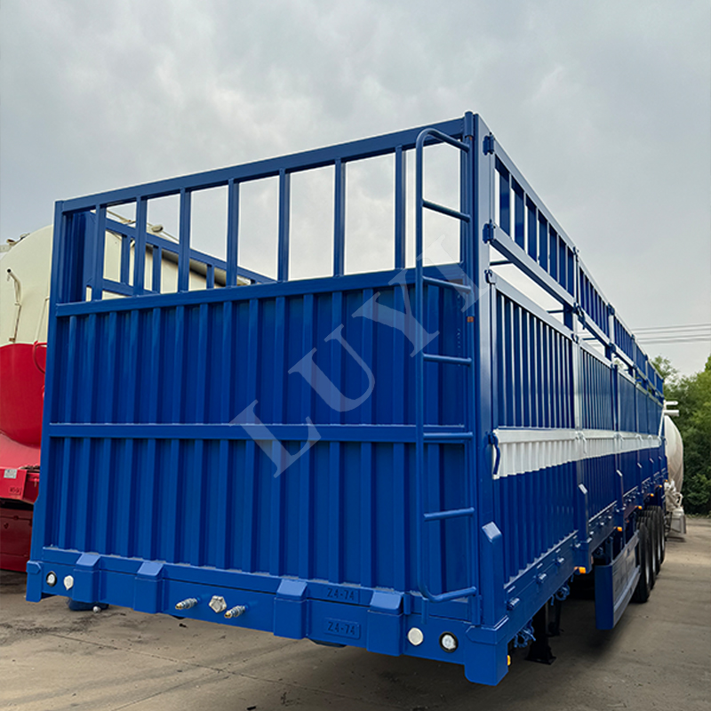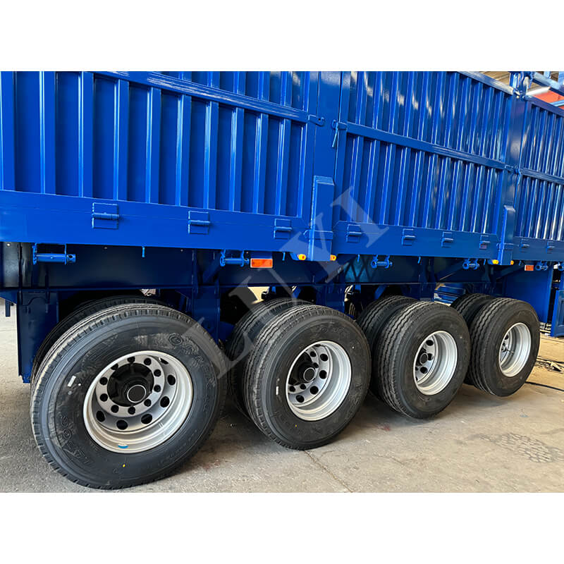 El semirremolque con valla basculante lateral de 4 ejes LUYI, un nuevo modelo de semirremolque de servicio pesado fabricado en China, está construido con acero de alta calidad. Tiene una capacidad de carga de 30 toneladas, adecuada para transportar mercancías pesadas como materiales de construcción y carbón. La distancia entre ejes del vehículo varía de 7000 a 8000 mm, el ancho de vía es de 1820 mm, está equipado con 3 ejes, 12 neumáticos y suspensión de ballestas, lo que garantiza una gran estabilidad de conducción y es capaz de manejar condiciones complejas de la carretera con facilidad.