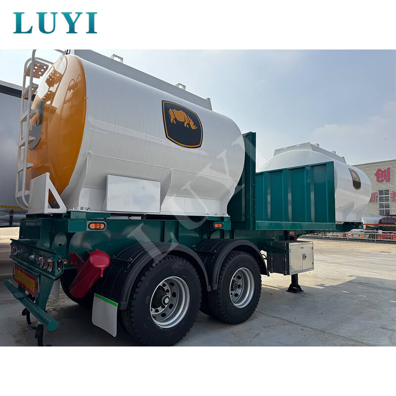 Este es un semirremolque cisterna de cemento a granel en forma de V de la marca LUYI, producido en Shandong, China, especialmente diseñado para el transporte de material en polvo a granel con excelente rendimiento de carga y alta practicabilidad. El tamaño del remolque es 1250025003500MM, el cuerpo del tanque está hecho de acero de alta calidad con una estructura sólida y buena estanqueidad. Su carga útil máxima es de más de 30.000 kg, personalizable en especificaciones de 40 y 50 toneladas para satisfacer diversas necesidades de transporte de carga a granel.