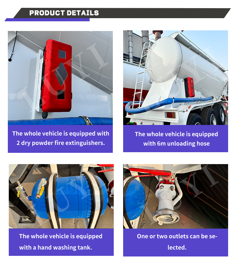 El semirremolque con tanque de polvo de 30 cúbicos y 3 ejes de la marca LUYI, originario de una base de fabricación de alta calidad en Shandong, China, está hecho a medida para escenarios de transporte de harina seca a granel. Todo el vehículo está hecho de acero al carbono de alta resistencia, y la viga principal utiliza acero estándar Q345B/ST52-3, que combina durabilidad y estabilidad de carga. El diseño de tamaño científico de 12000 mm*2500 mm*3980 mm es adecuado para diversos escenarios de transporte.