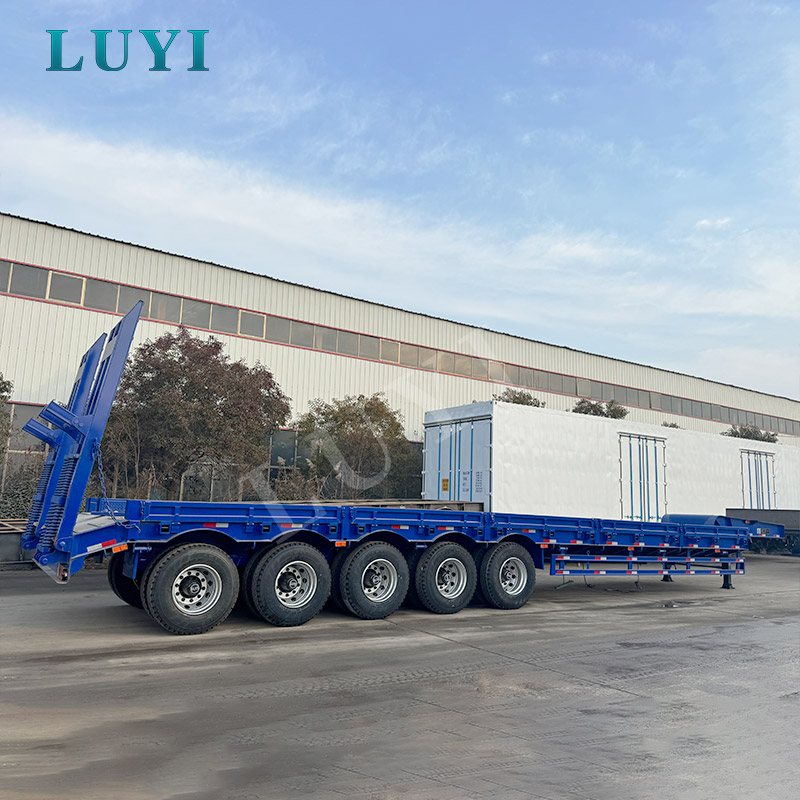 Originario de Shandong, China, el semirremolque de plataforma baja para trabajo pesado Luyi, de 5 ejes y 80 toneladas, es un remolque de camión robusto diseñado para el transporte de cargas pesadas. Construido con acero de alta calidad, cuenta con unas dimensiones de 130003000178 mm y una capacidad de carga máxima de 80.000 kg, ideal para transportar diversos equipos pesados con facilidad.