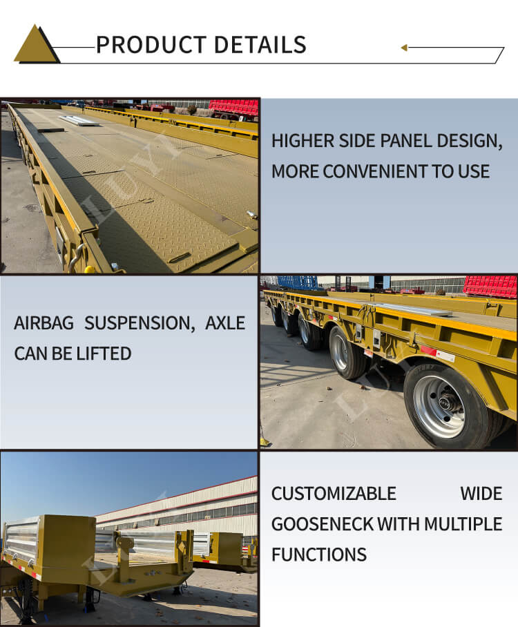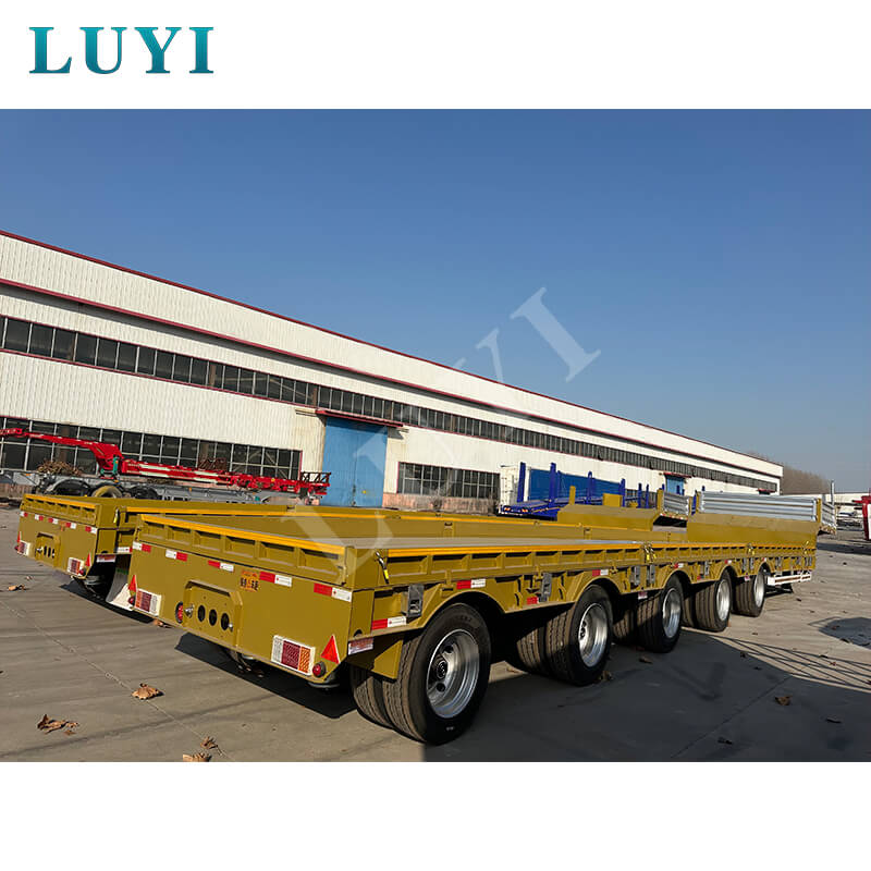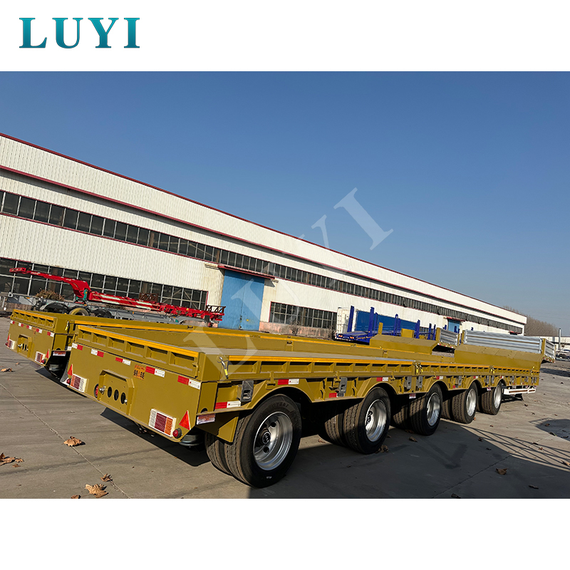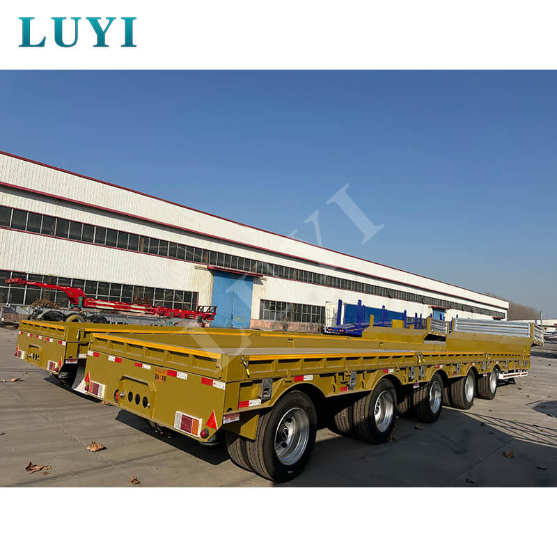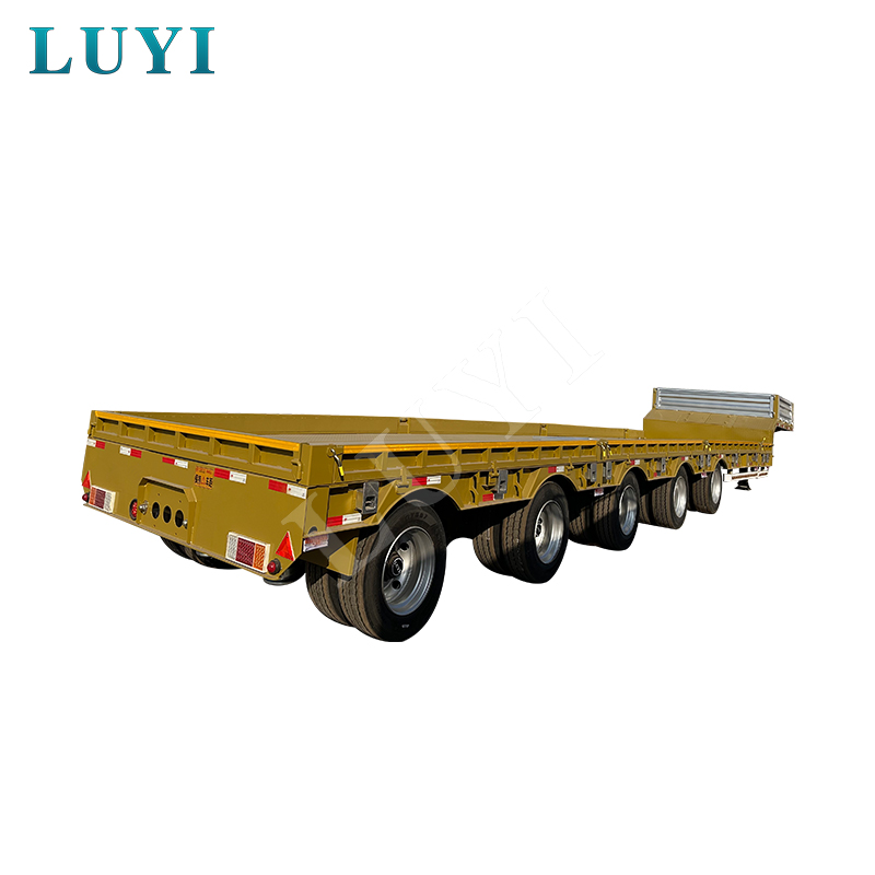 El semirremolque de plataforma baja con suspensión neumática de 5 ejes, 16 m y 80 toneladas LUYI, un semirremolque premium de Shandong, China, está diseñado para el transporte de equipos pesados. Está fabricado con acero de alta resistencia, con un tamaño estándar de 16000×3500×1800 mm y una capacidad de carga de 60 a 200 toneladas, lo que permite manejar fácilmente cargas pesadas como maquinaria grande.