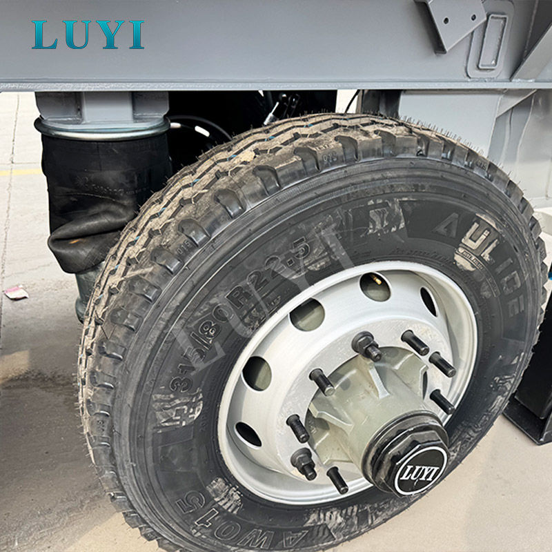 Sistema de suspensión de servicio pesado: Emplea una robusta suspensión mecánica de ballestas, diseñada específicamente para distribuir uniformemente la carga masiva en los cinco ejes, lo que garantiza la estabilidad en terrenos irregulares y mejora la durabilidad.