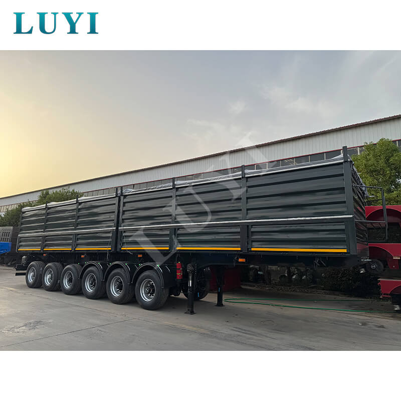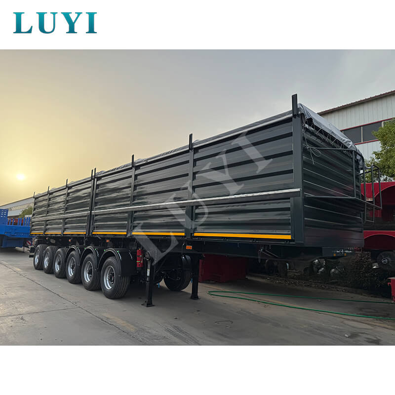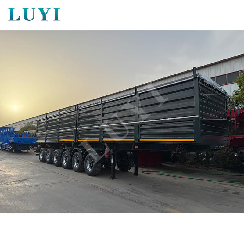 El semirremolque con paredes laterales personalizado con capacidad de carga de 6 ejes y 100 toneladas LUYI, originario de la provincia de Shandong, China, está especialmente diseñado para el transporte de carga pesada. Las dimensiones de la carrocería alcanzan los 16500×2500×600 mm y el volumen es de 12500×2600×2100 mm. El diseño estructural científico y razonable puede satisfacer plenamente las necesidades de transporte de mercancías de gran volumen y peso.