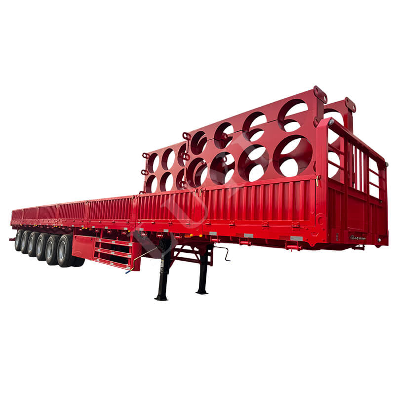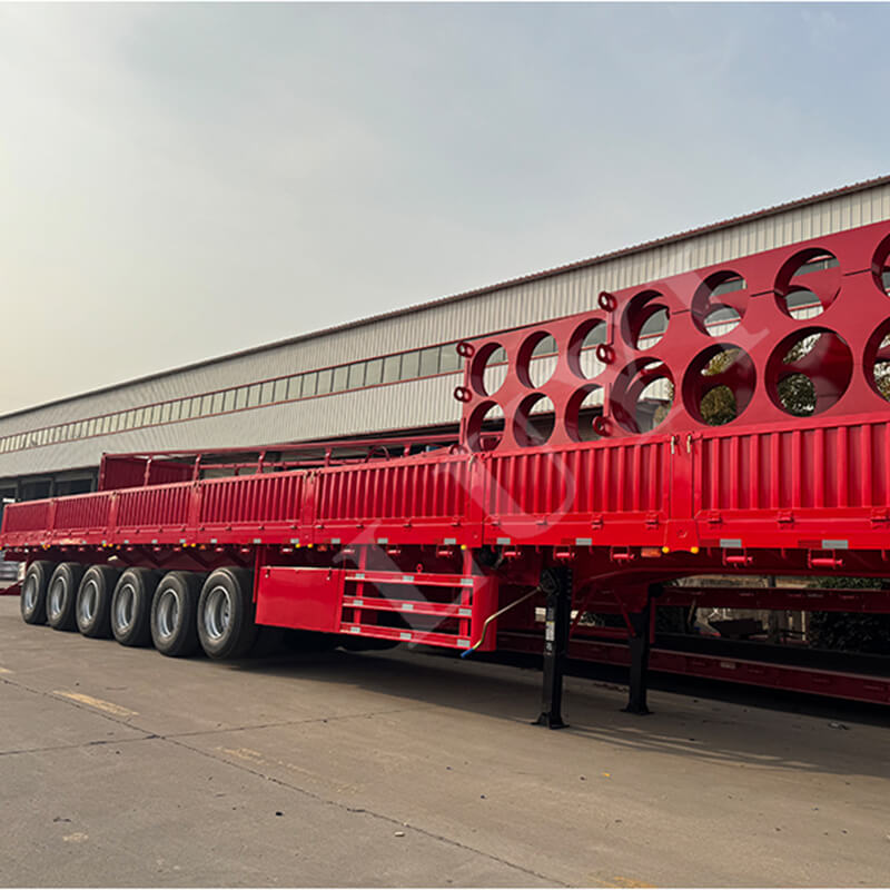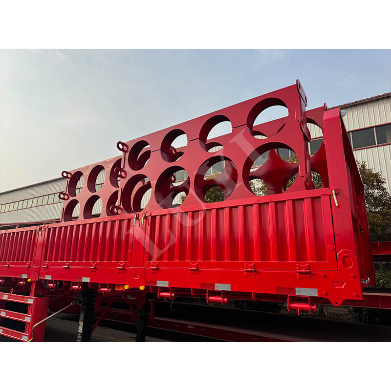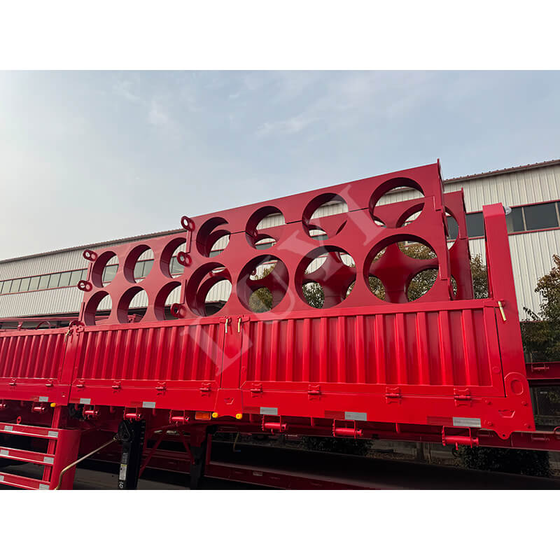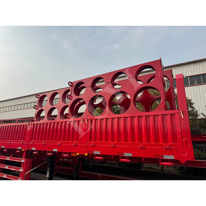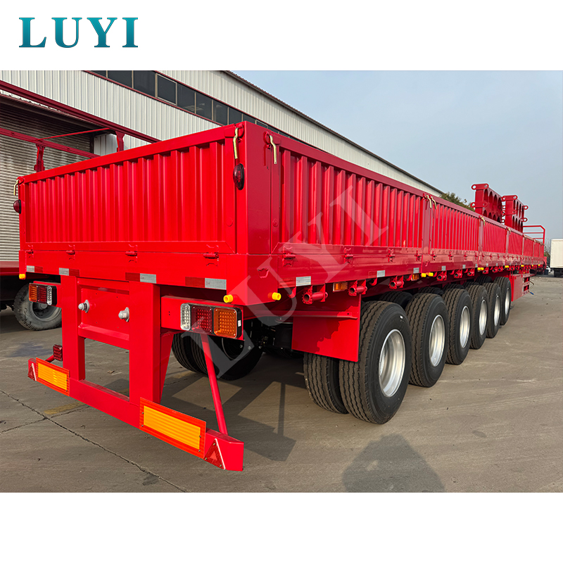 El semirremolque de pared lateral LUYI de 6 ejes, 15,5 m, 80-100 toneladas y 40 pies, también llamado semirremolque de plataforma/tipo estaca, se origina en Shandong, China. Es un semirremolque de alta calidad diseñado para el transporte de contenedores y carga a granel. Fabricado íntegramente en acero, mide 15500x2500x1600 mm y tiene una carga útil máxima efectiva de 60 a 100 toneladas, con una gran capacidad de carga para satisfacer fácilmente las necesidades de transporte de carga pesada.