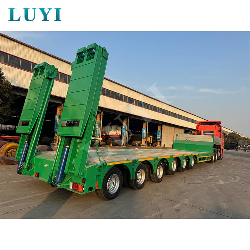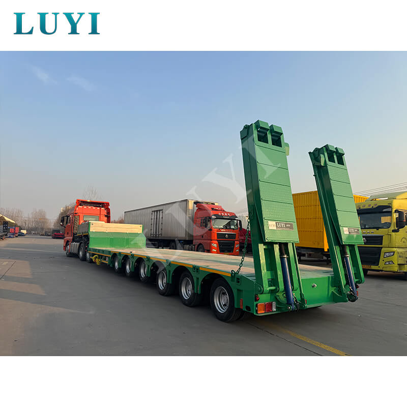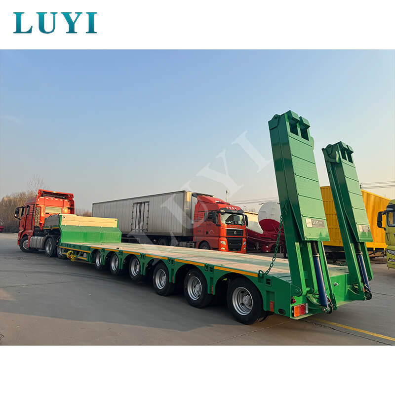 El semirremolque de servicio pesado Luyi, de 6 ejes y 80 toneladas, originario de la provincia de Shandong, China, es un remolque de camión profesional diseñado para escenarios de transporte de carga pesada. Construido con acero de alta calidad, cuenta con una impresionante carga útil máxima efectiva de 120 toneladas, manejando fácilmente maquinaria pesada de 80 toneladas y otras cargas grandes con un rendimiento robusto.