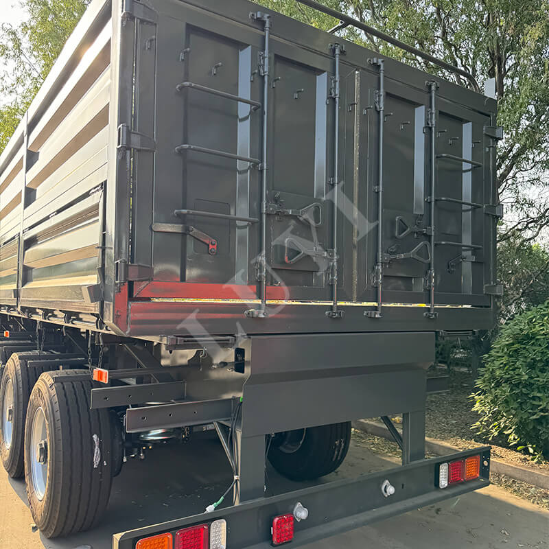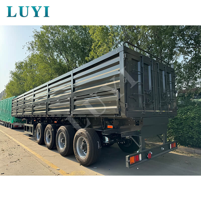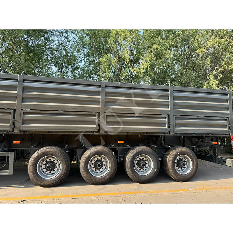 El semirremolque con volquete lateral de 4 ejes y 60 toneladas LUYI está personalizado para el transporte de carga pesada a granel en escenarios como minas y proyectos de infraestructura. Adopta una estructura de descarga hidráulica con inclinación lateral, lo que permite una descarga rápida en espacios estrechos y un vaciado completo del compartimento en cuestión de minutos, lo que mejora en gran medida la eficiencia de la rotación de carga. Los componentes centrales que soportan la carga están hechos de acero duradero de alta resistencia, combinados con un diseño de 4 ejes y bolsas de aire con suspensión neumática. Esto no solo distribuye la presión de cargas pesadas de 60 toneladas y cumple con los requisitos reglamentarios, sino que también ajusta la dureza de la absorción de impactos según la carga, lo que reduce las sacudidas de la carga y el impacto en la carretera. Todo el vehículo equilibra la descarga eficiente, la durabilidad de cargas pesadas y la estabilidad de conducción, lo que lo convierte en una opción confiable para el transporte de carga pesada a granel.