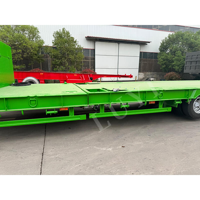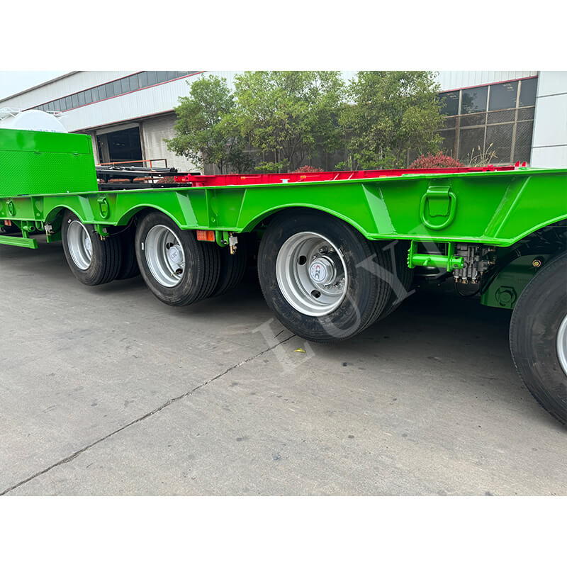 Equipado con ejes marca Fuwa de 13 toneladas, suspensión mecánica y un sistema de frenos de doble línea, ofrece una respuesta de frenado sensible y una conducción segura. Compatible con varias especificaciones de neumáticos, incluidas 11.00r20, 12r22.5, 315 y 385, tiene una carga útil máxima efectiva de 60.000 kg y una capacidad de carga que oscila entre 100 y 120 toneladas. Configurado con estabilizadores estándar de 28 toneladas, viene con pernos rey JOST opcionales de 2 pulgadas (50 mm) o 3,5 pulgadas (90 mm). Personalizable en color, es una opción ideal para escenarios de transporte pesado.