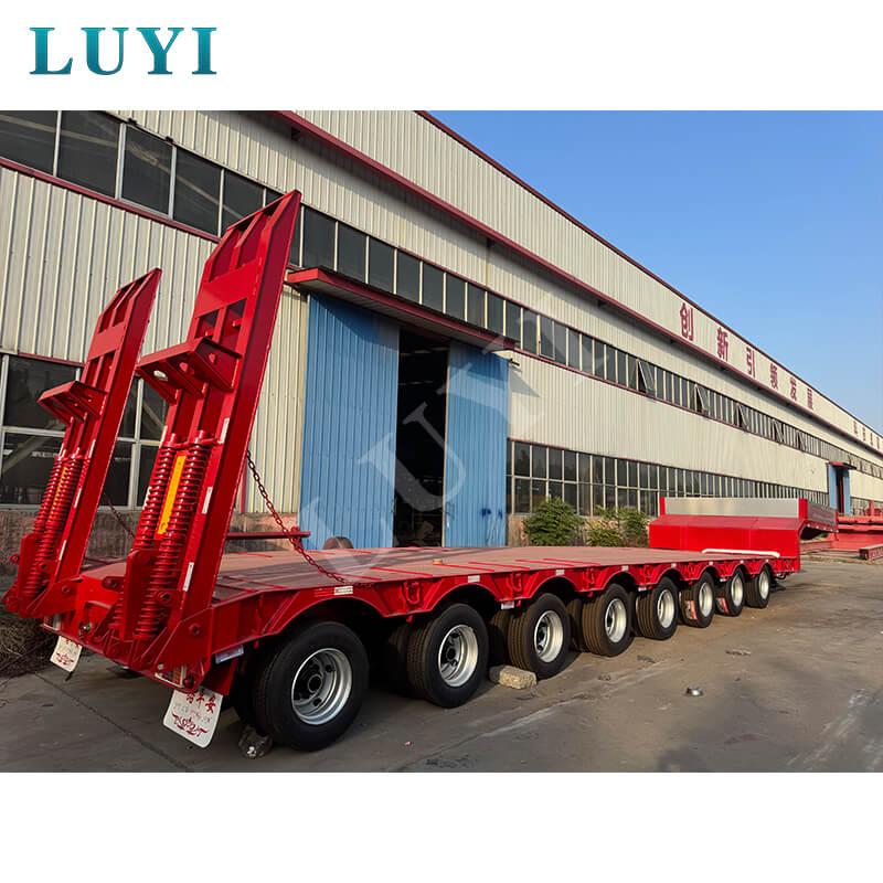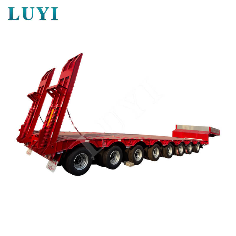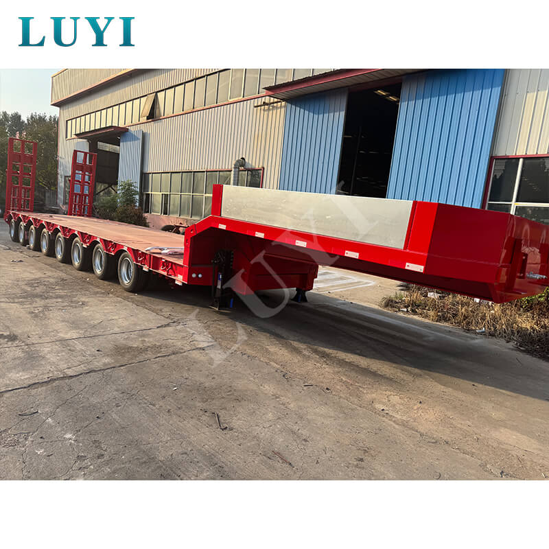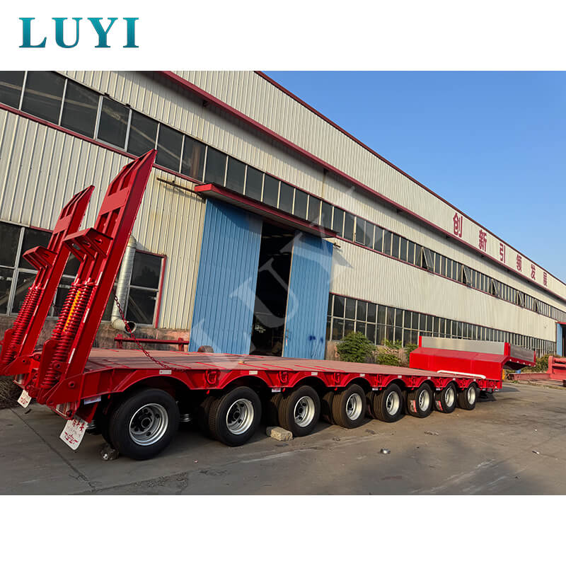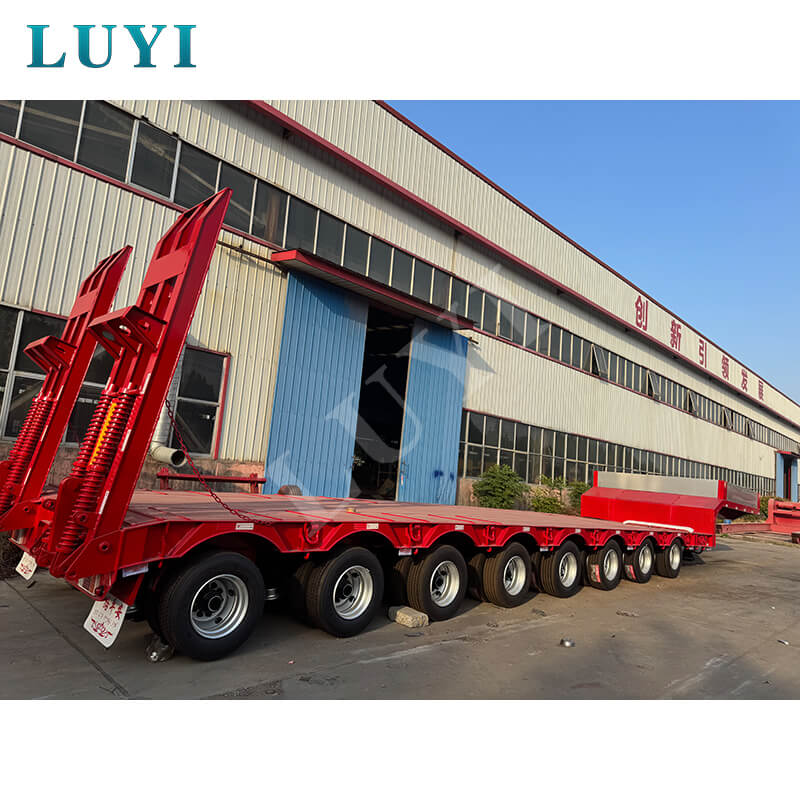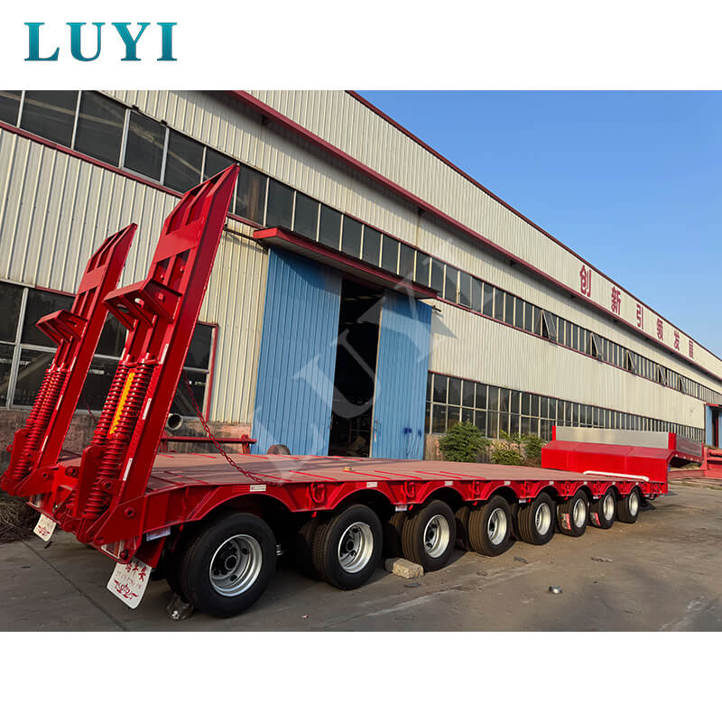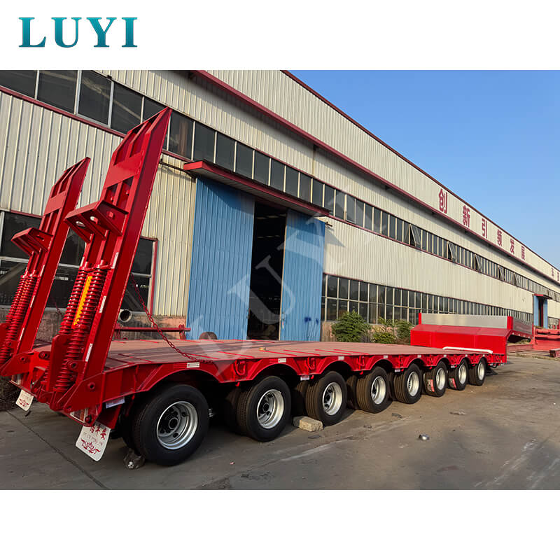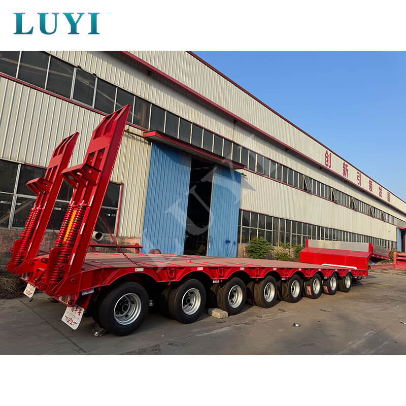 El semirremolque hidráulico de plataforma baja con cargador Luyi, de 8 ejes, 150 toneladas y 40 pies, originario de la provincia de Shandong, China, es un semirremolque de alta calidad especialmente diseñado para el transporte de carga pesada. Fabricado en acero de alta calidad, combina robustez y durabilidad, con una carga útil máxima efectiva de 100 toneladas y una capacidad de carga máxima de 150 toneladas, satisfaciendo fácilmente diversas necesidades de transporte pesado.
