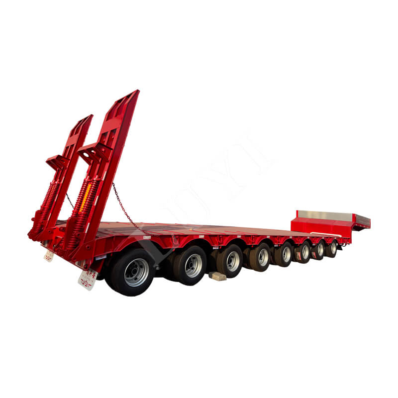 Etiquetas calientes: Semirremolque hidráulico de plataforma baja con cargador de 8 ejes, 150 toneladas y 40 pies