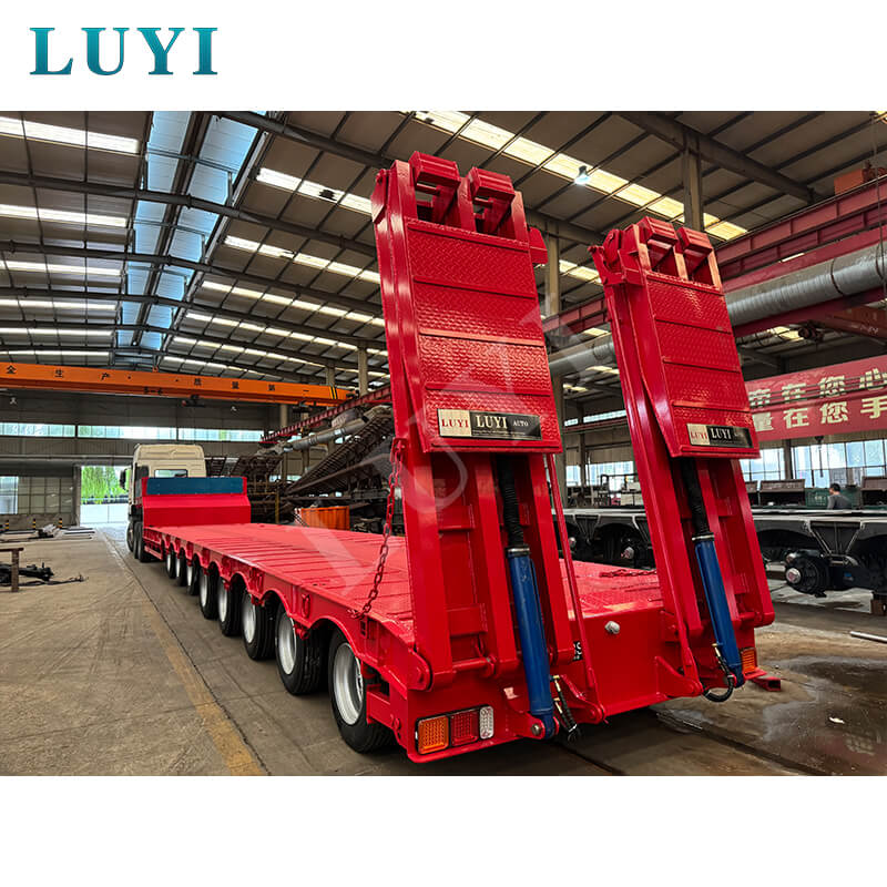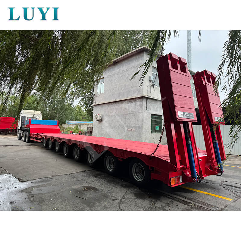 El semirremolque de plataforma baja con escalera hidráulica y cuello de cisne de 8 ejes LUYI es un producto de alta calidad especialmente diseñado para el transporte de carga pesada.