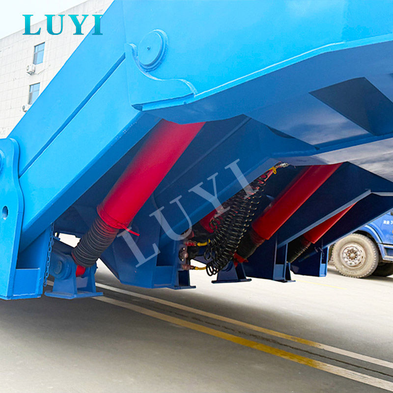 Cuello de cisne desmontable para carga frontal: El cuello de cisne hidráulico se puede desmontar rápida y fácilmente, bajando la parte delantera del remolque al suelo para crear una rampa de acceso suave. Esto elimina la necesidad de subir rampas de alto riesgo.