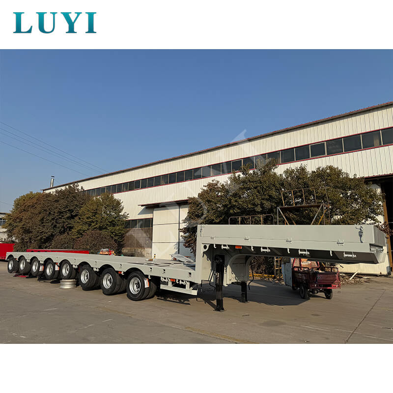 Originario de Shandong, China, el semirremolque de plataforma baja para trabajo pesado LUYI, 8 ejes y 17 m, es un equipo de alto rendimiento diseñado para el transporte de carga pesada. Con una capacidad de carga de 80 toneladas y una carga útil máxima superior a los 30.000 kg, maneja sin esfuerzo maquinaria de ingeniería de gran tamaño y componentes pesados. Con dimensiones de 16900*3000*1800 mm, el diseño de plataforma baja se adapta a cargas con altura excesiva, evitando efectivamente las restricciones de altura de transporte.