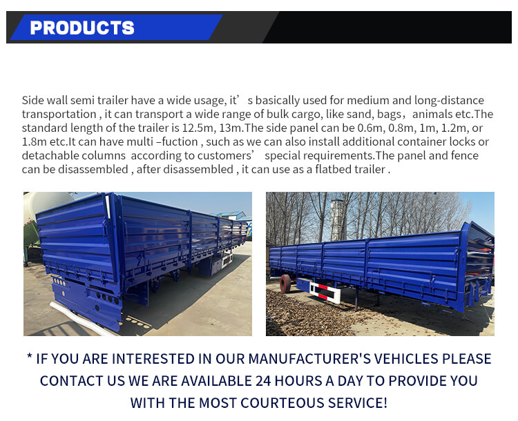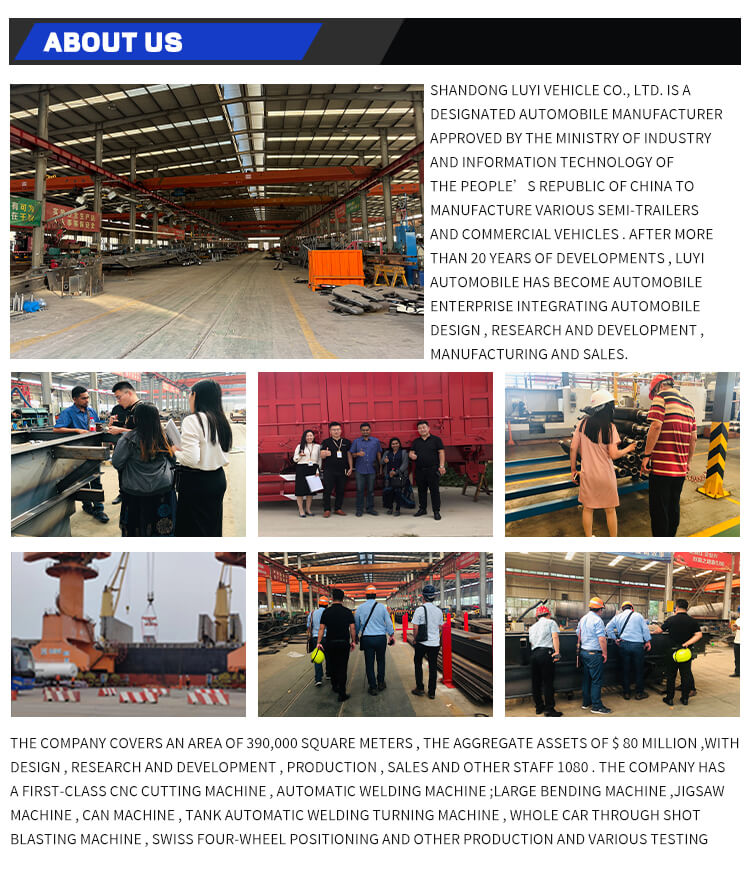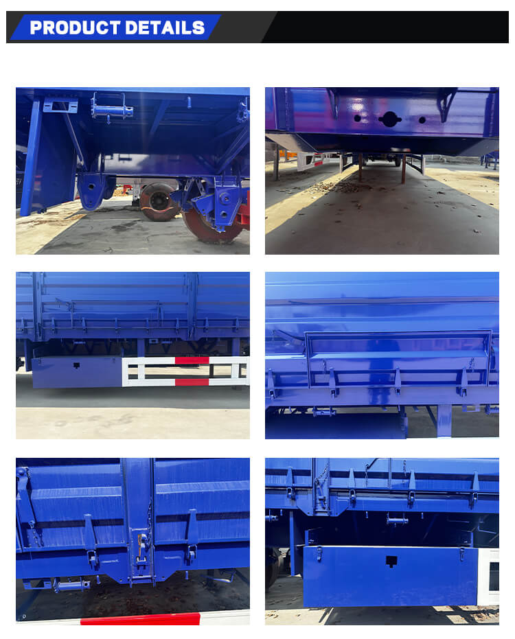 El remolque mide 12500×2500×1600 mm y está equipado con 3 ejes (de 13 toneladas cada uno) y un sistema de suspensión mecánica para garantizar una conducción suave y una capacidad de carga fiable. Se combina con un tren de aterrizaje estándar de 28 toneladas para operaciones de carga y descarga seguras, y neumáticos con especificaciones 12R22.5/12.00R20/11R22.5 para adaptarse a diferentes condiciones de la carretera. Además, las ballestas de 90×13×10 mm mejoran la capacidad de carga, la escalera mecánica mejora la comodidad operativa y los colores se pueden personalizar según sea necesario, lo que proporciona una solución personalizada flexible y confiable para logística y transporte.