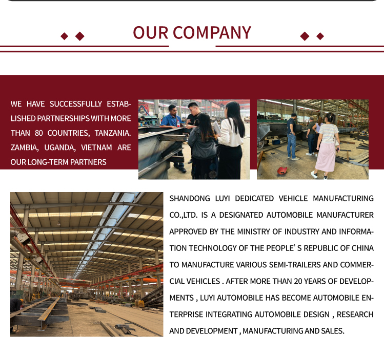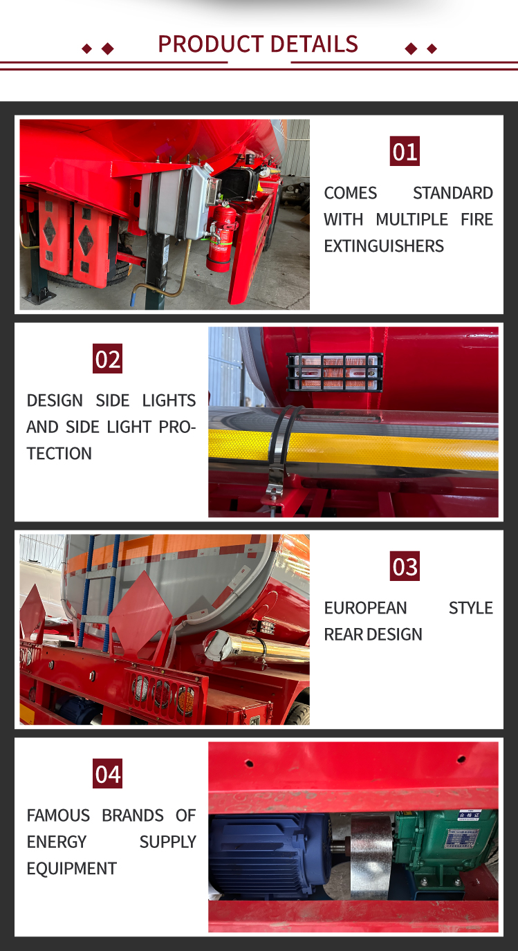 Al ofrecer una amplia personalización, admite ajustes estructurales (diseño de múltiples compartimentos, entradas/salidas de aceite ajustables), actualizaciones de materiales (acero al carbono Q235, acero inoxidable para resistencia a la corrosión, aleación de aluminio para mayor ligereza) y adiciones funcionales (deflectores de ondas, control de temperatura, medidores de nivel inteligentes). Como semirremolque, se combina con tractores para una alta flexibilidad (estacionamiento separado para mantenimiento) y un estricto cumplimiento de las regulaciones nacionales, incluida la presión.Pruebas electrónicas y prevención de fugas, garantizando un transporte de petróleo seguro y eficiente.
