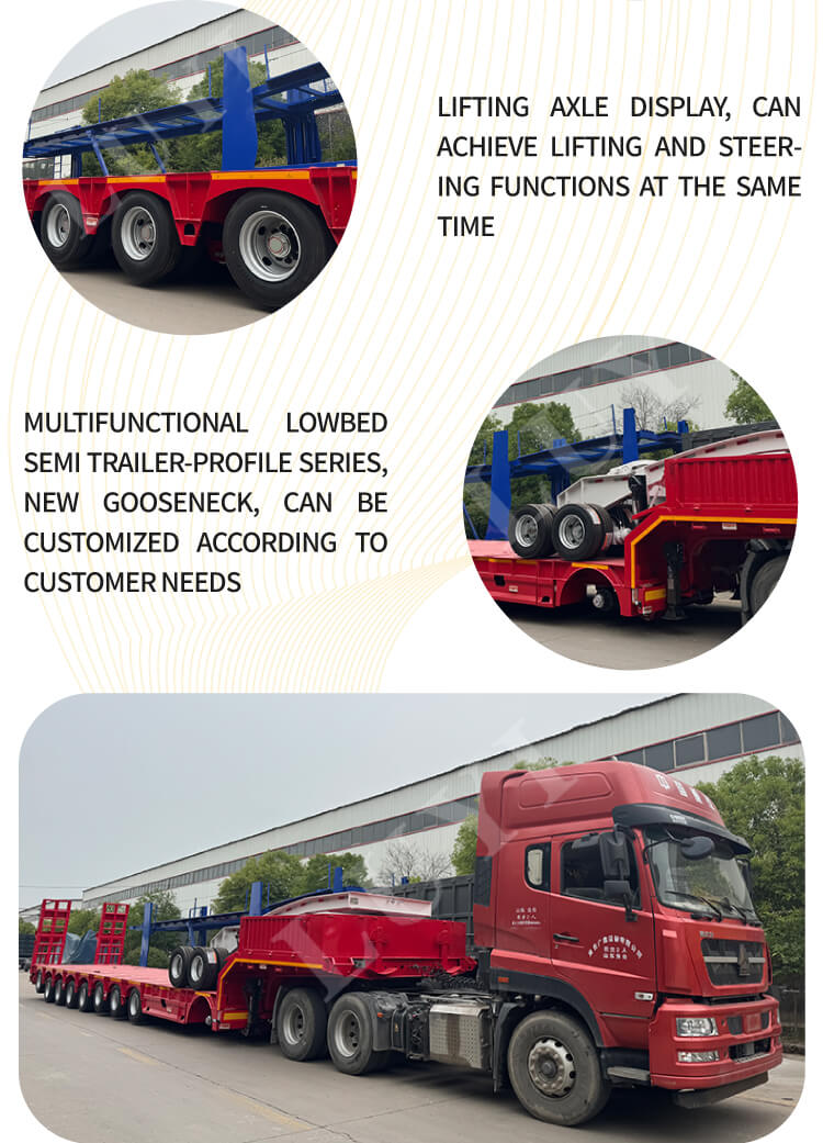 El semirremolque de plataforma baja con suspensión neumática 120T de 8 ejes LUYI, originario de Shandong, China, es un semirremolque de alto rendimiento especialmente diseñado para el transporte de equipos pesados. Fabricado en acero de alta calidad, mide 22000×3000×1600 mm con una carga útil máxima de 100 toneladas, lo que satisface fácilmente las necesidades de transporte de diversos equipos pesados.