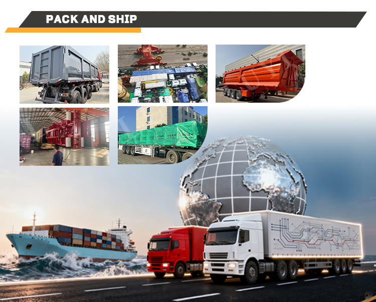 Fabricado con acero de primera calidad y reforzado con cajas basculantes T700/Hardox, el remolque cuenta con una excepcional resistencia al impacto y durabilidad al desgaste, soportando frecuentes ciclos de carga y descarga. Equipado con componentes confiables como ejes FUWA/BPW/LEAO y pivotes JOST, combinados con opciones de suspensión estable y tren de aterrizaje de dos velocidades, garantiza una operación segura incluso en terrenos irregulares. La pintura anticorrosiva y la iluminación LED de bajo consumo mejoran la longevidad, mientras que los colores personalizables añaden practicidad. Con una carga útil máxima de 90 toneladas, es la opción duradera y de alto rendimiento para las necesidades de transporte pesado.