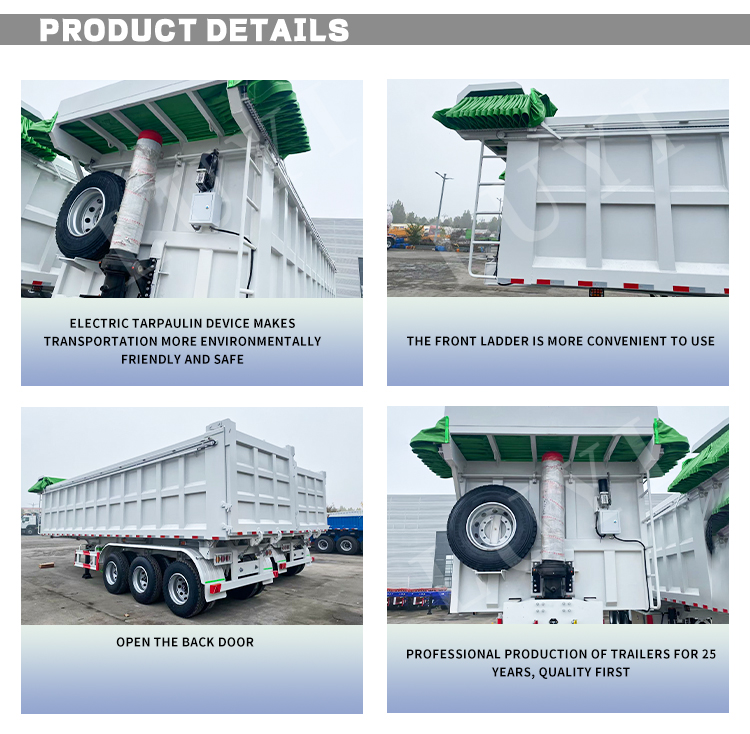 El semirremolque volquete basculante trasero de 3 ejes blanco de la marca LUYI, originario de una fabricación de alta calidad en Shandong, China, es un remolque de camión eficiente especialmente diseñado para el transporte de cargas pesadas. El producto está fabricado de acero de......