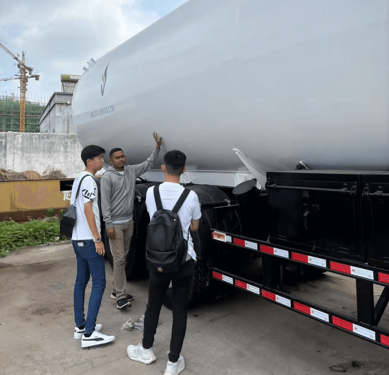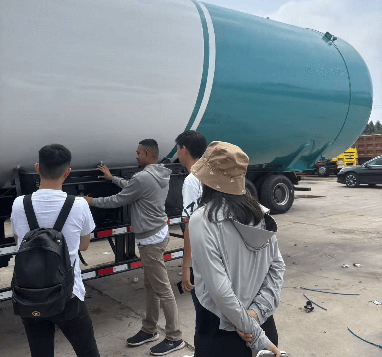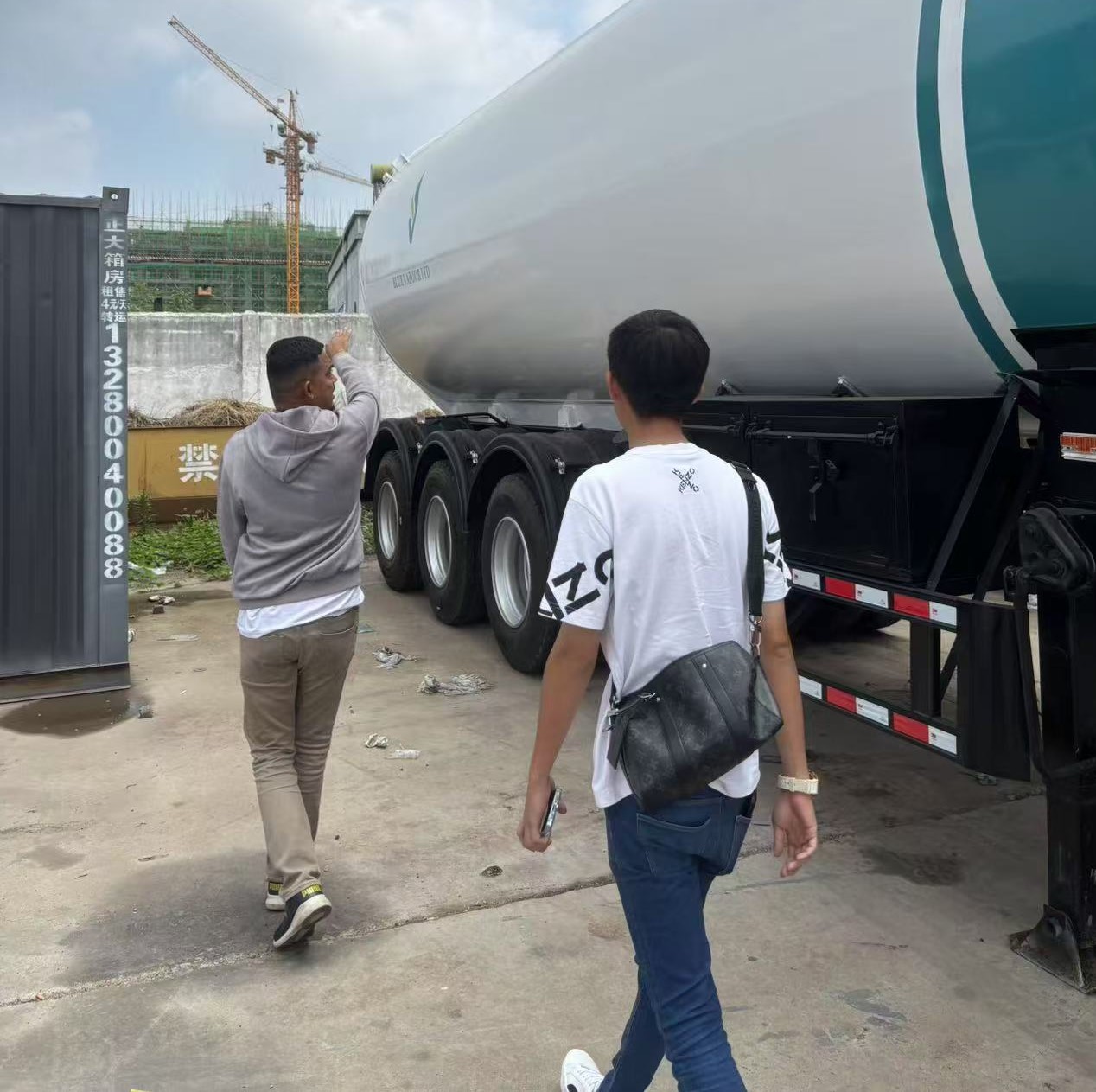 El cliente liberiano inspeccionó cuidadosamente cada detalle de la Semi de tanque de petróleo, desde el material del cuerpo del tanque hasta el proceso de soldadura, desde el sistema de frenado hasta el diseño a prueba de fugas e realizó consultas detalladas. Al enterarse de que el semi remolque del tanque de petróleo está hecho de acero de alta resistencia, tiene las características de resistencia a la corrosión y resistencia al impacto, y ha pasado pruebas de presión estrictas para garantizar la seguridad durante el transporte, el cliente asintió con frecuencia para mostrar reconocimiento.