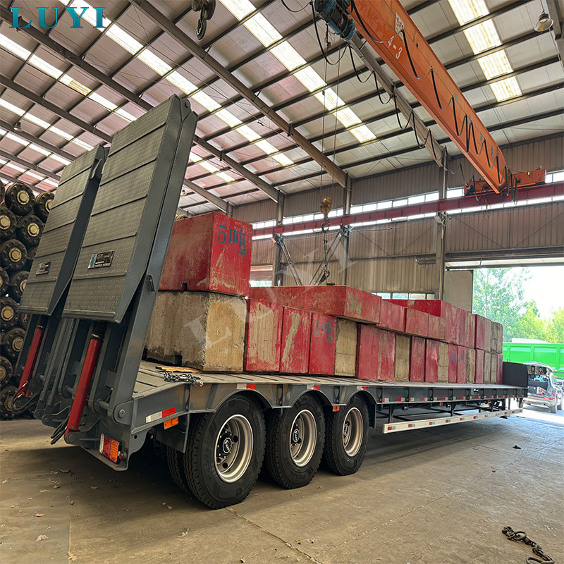 La parte clave de la inspección, la demostración de carga de 100 toneladas, vio laSemirremolque plataforma con cuello de cisne de 3 ejestomar protagonismo. En el taller se izaron de forma ordenada con grúas los objetos pesados marcados con pesas sobre la plataforma del semirremolque de plataforma con cuello de cisne de 3 ejes. A medida que aumentaba la carga, los clientes monitorearon de cerca la deformación del bastidor, la presión de los neumáticos y la retroalimentación del sistema de suspensión del semirremolque de plataforma de cuello de cisne de 3 ejes. Al final, el semirremolque de plataforma plana con cuello de cisne de 3 ejes soportó de manera constante el peso de 100 toneladas sin deformación significativa de la carrocería, y la suspensión y los ejes funcionaron de manera estable. Demostró su rendimiento de carga con fuerza y ganó el reconocimiento de los clientes.