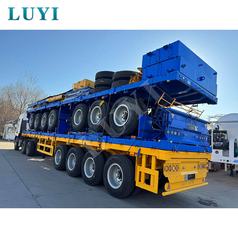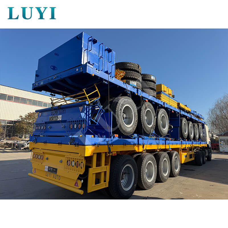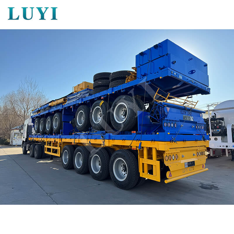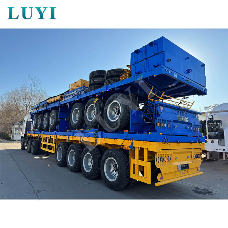 Originario de China, el semirremolque de contenedores de plataforma plana de 40 pies y 3 ejes LUCKIN está especialmente diseñado para remolcar camiones, lo que lo convierte en una opción ideal para el transporte de contenedores. Construido con acero de alta resistencia, mide 12500 mm × 2500 mm × 1500 mm y cuenta con una estructura resistente y duradera.