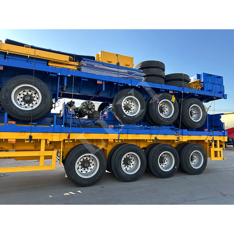 Ofrece una capacidad de carga flexible que va desde 30T a 60T, con una carga máxima de 60T, adecuada para transportar contenedores de 20 y 40 pies. En términos de configuración, está equipado con ejes Fuwa/BPW/BERKLEY de 13/16 toneladas y 12 neumáticos 12R22.5, lo que garantiza un excelente rendimiento de carga. La suspensión está disponible en opciones mecánicas o neumáticas, combinadas con ballestas de 90 (W) mm × 13 (grosor) mm × 10 (capa) para una conducción estable.