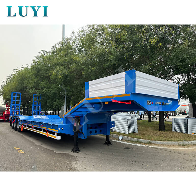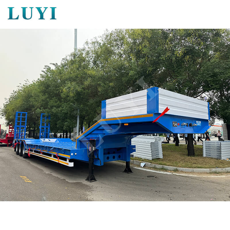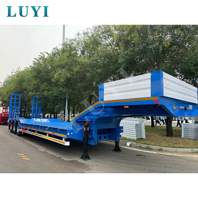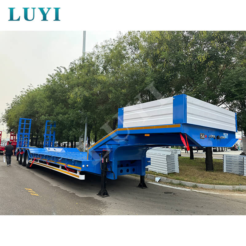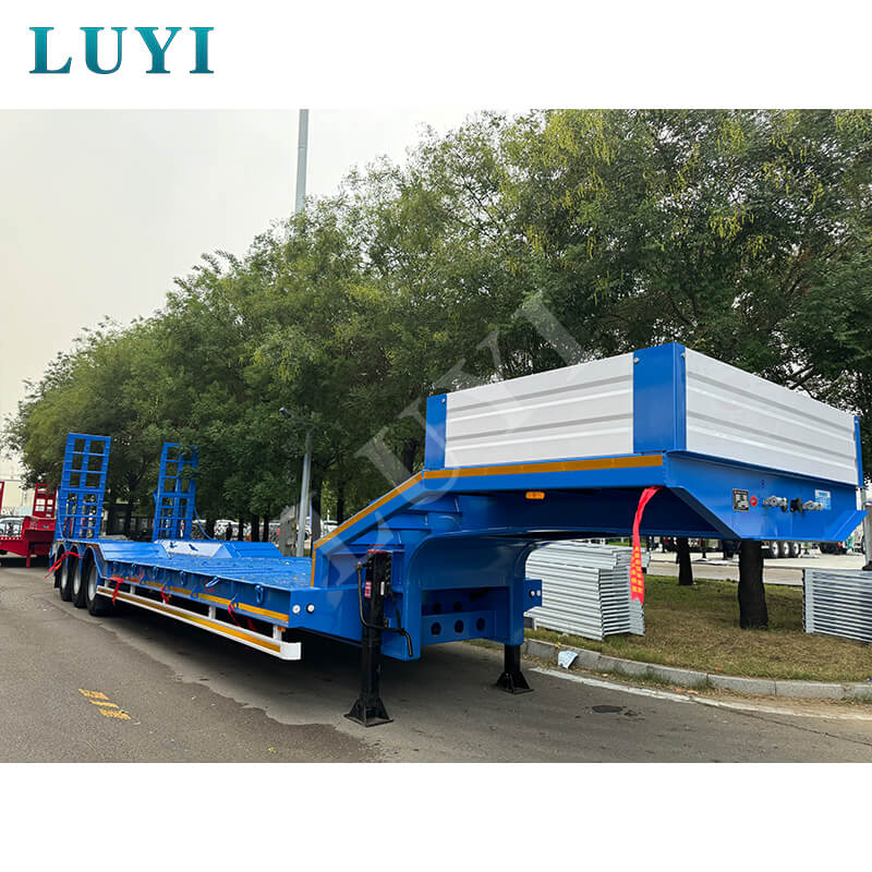 El semirremolque Lowboy de 3 ejes Luyi, originario de la provincia de Shandong, China, es un camión remolque de alta calidad especialmente diseñado para el transporte de contenedores. Construido con acero, cuenta con un rendimiento robusto y duradero. Los ejes ofrecen configuraciones opcionales de modelos de 13/16 toneladas de marcas reconocidas como FUWA, BPW y CIMC, con una carga útil máxima efectiva que supera los 30.000 kg y una capacidad de carga personalizable.