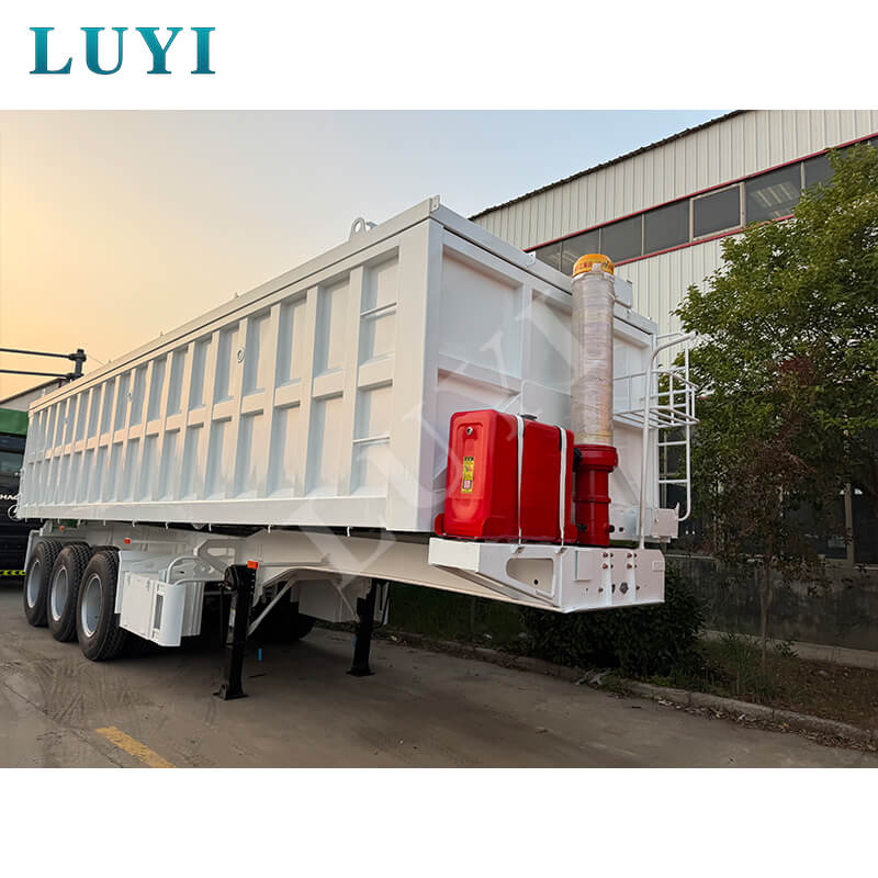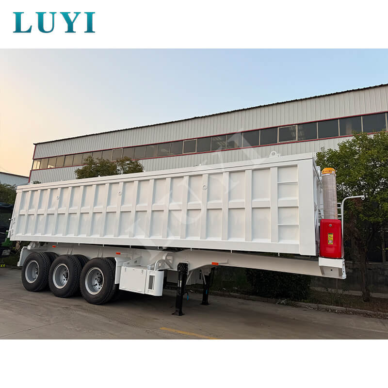 El semirremolque volquete con volteo trasero de 60 toneladas en forma de U rectangular de tres ejes Luyi, originario de la provincia de Shandong, China, es un semirremolque nuevo especialmente construido para el transporte de carga pesada. Su carga útil máxima efectiva supera los 30.000 kilogramos. Equipado con un diseño de 3 ejes, junto con neumáticos 12R22.5 y dos sistemas de suspensión opcionales (mecánico y neumático), garantiza estabilidad y confiabilidad durante el transporte de cargas pesadas.